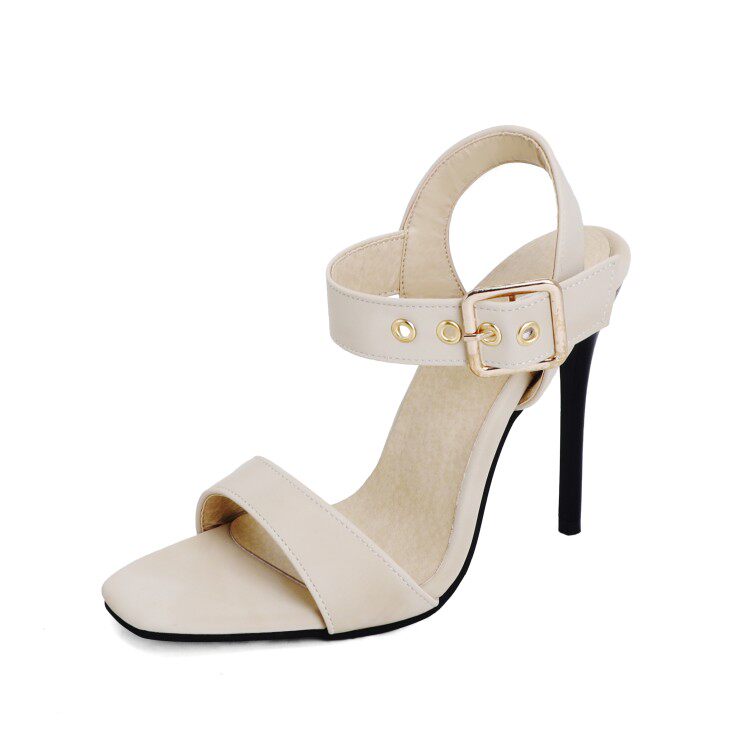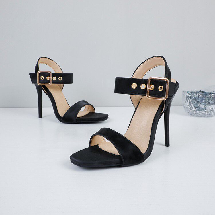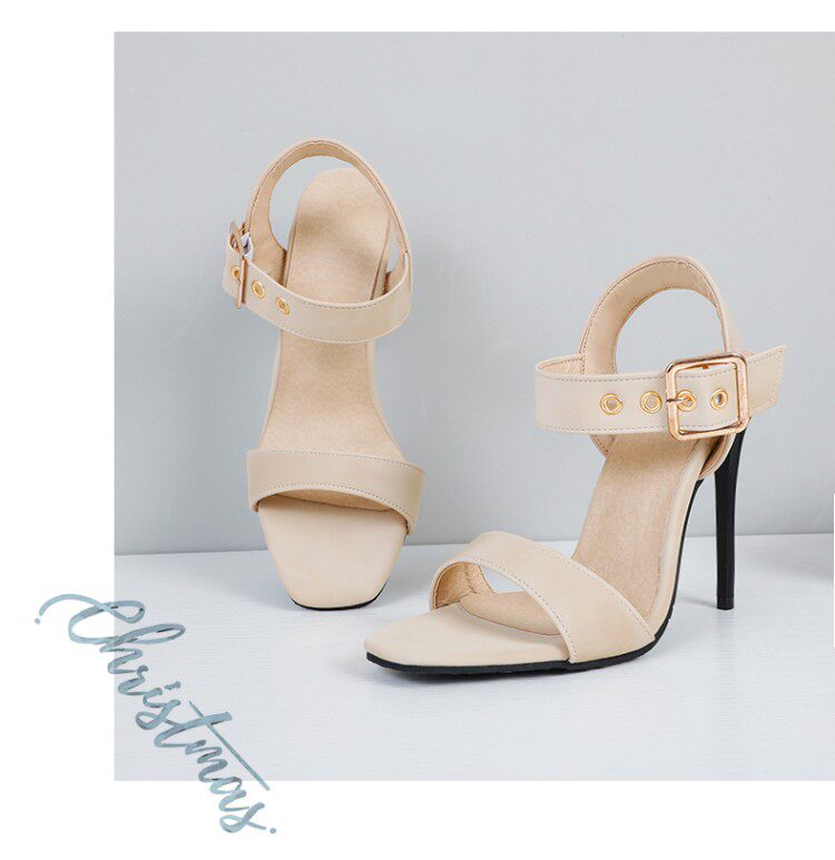 Красивые босоножки на шпильке с открытым носком и пряжкой на ремне, большие размеры 44, 45, 46, 47, 48, римские сандалии на очень высоком каблуке с квадратным носком