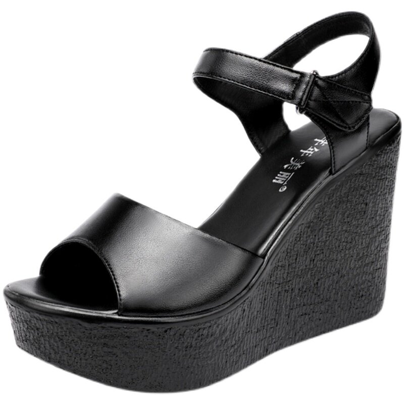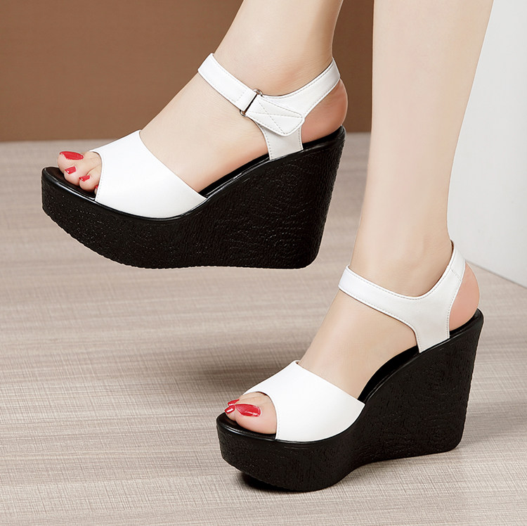Летние высокие сандалии, обувь на платформе, из натуральной кожи