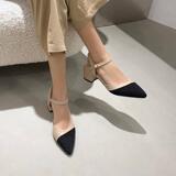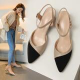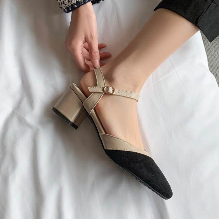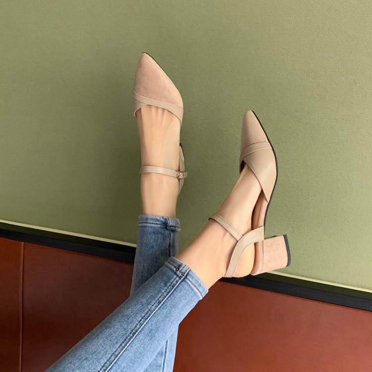 Сандалии, новинка 2021 года, женские повседневные туфли на толстом каблуке Baotou, туфли Мэри Джейн на среднем каблуке с острым носком, женская обувь больших размеров от 41 до 43
