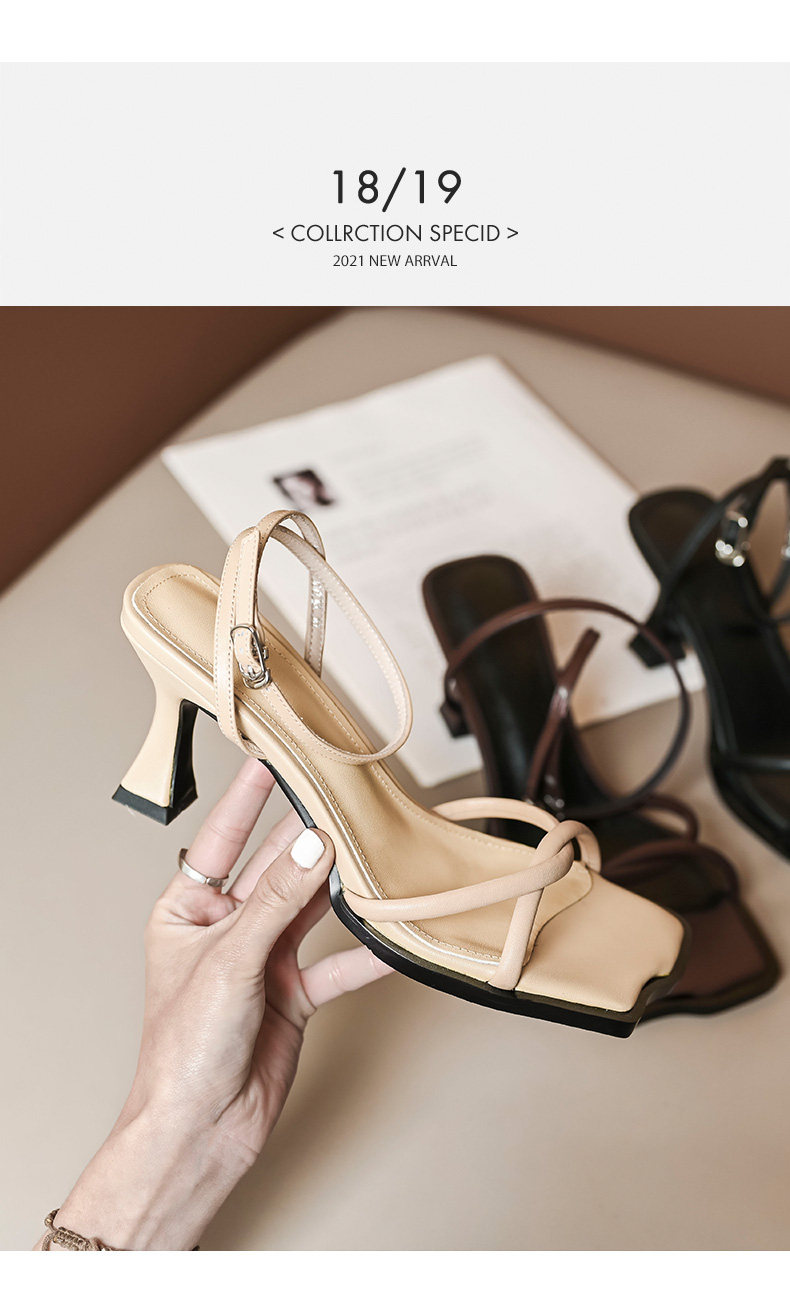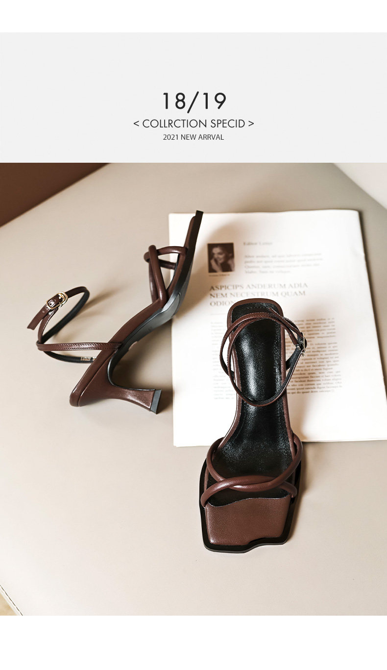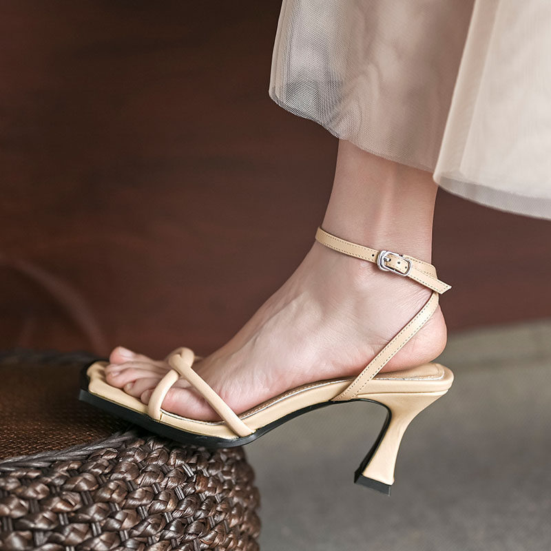 Летние ретро босоножки с ремешком, туфли на высоком каблуке, 2024 года, тонкий ремешок