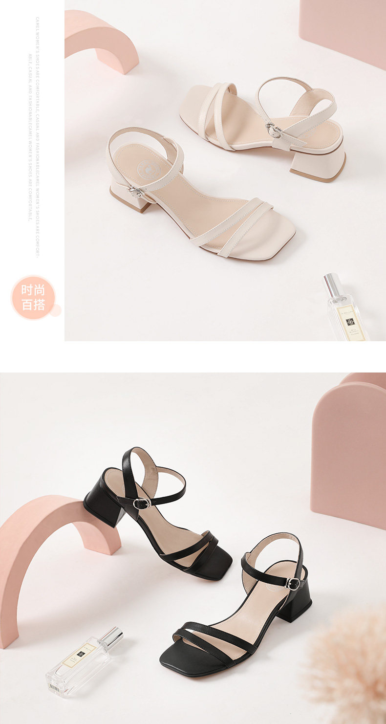 Универсальные сандалии для отдыха на высоком каблуке, коллекция 2021, из натуральной кожи