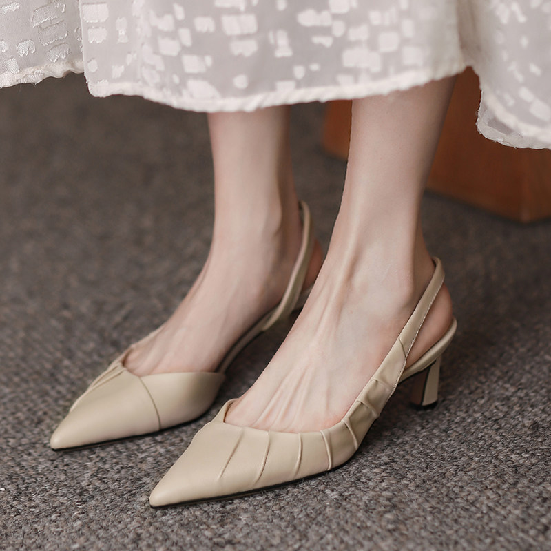 Летние босоножки, туфли на высоком каблуке, коллекция 2022, из натуральной кожи, простой и элегантный дизайн