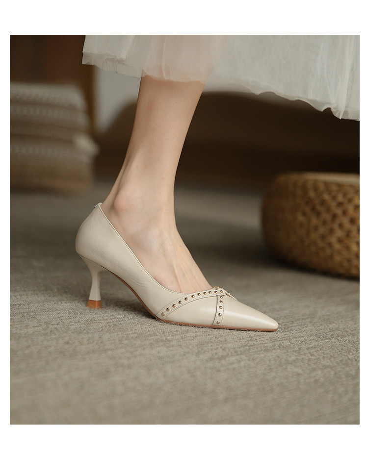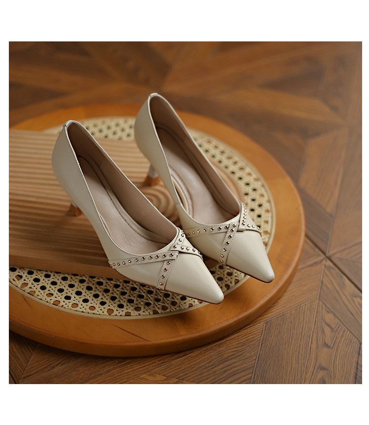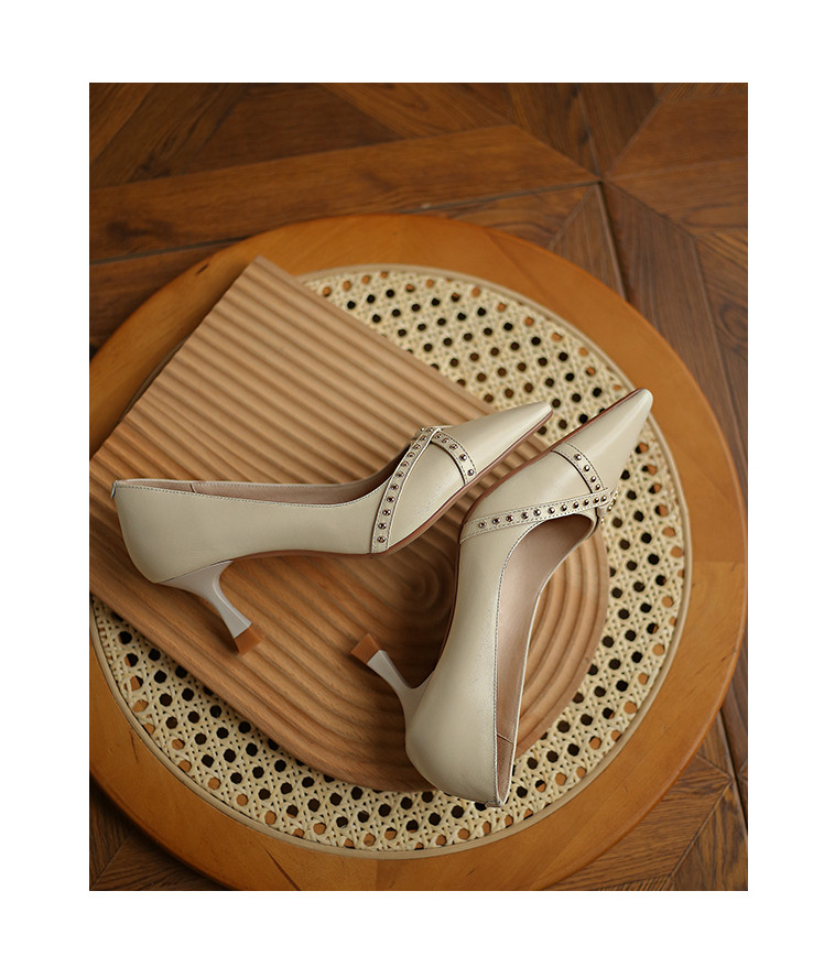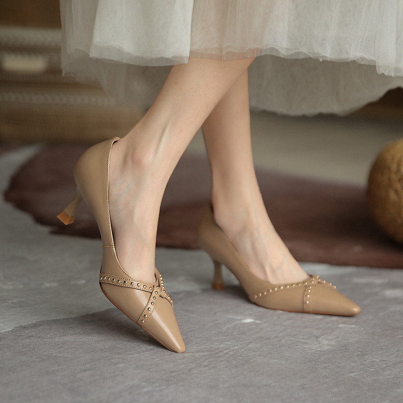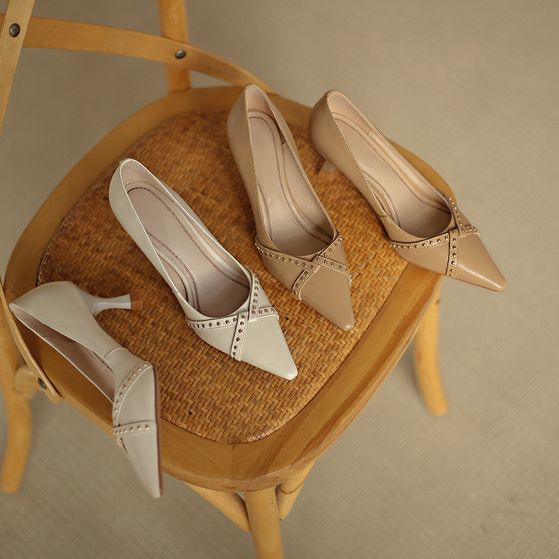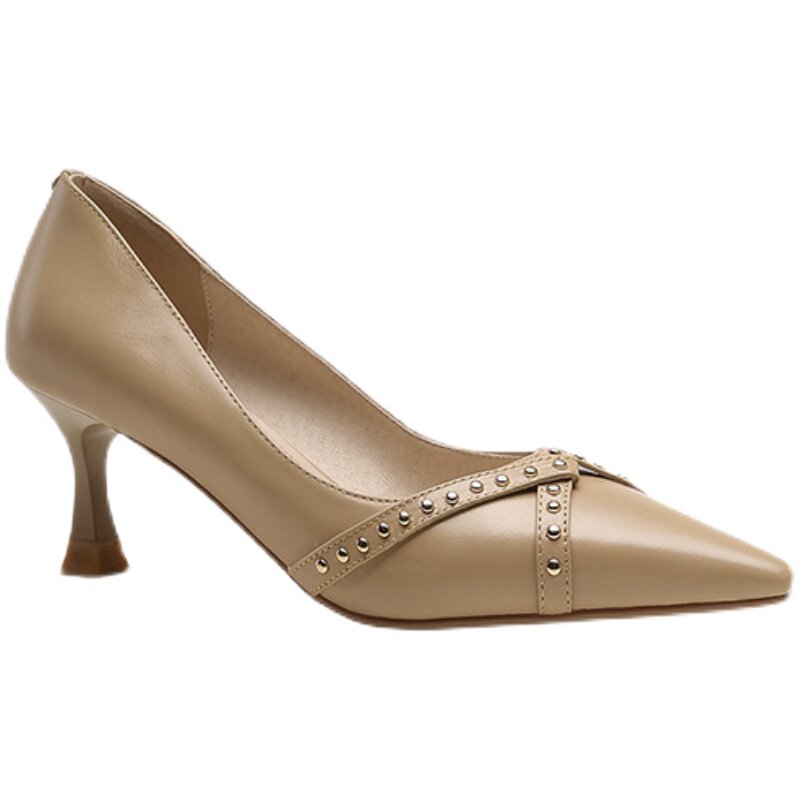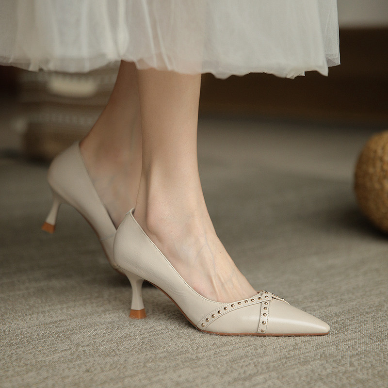 Обувь с заостренным носом, универсальные туфли на высоком каблуке, 2023, французский ретро стиль, из натуральной кожи