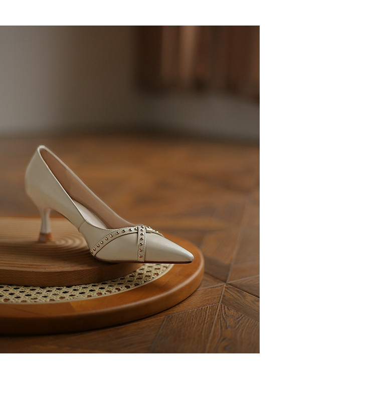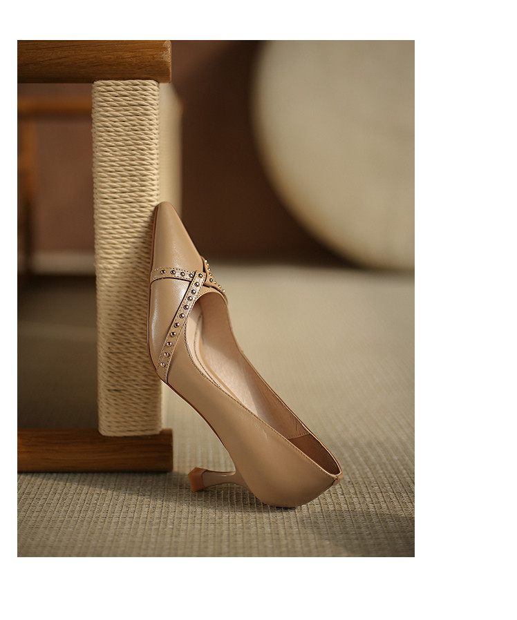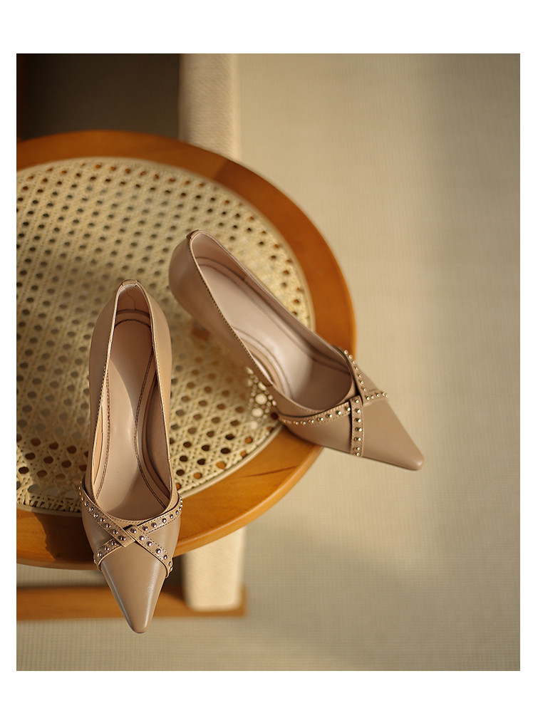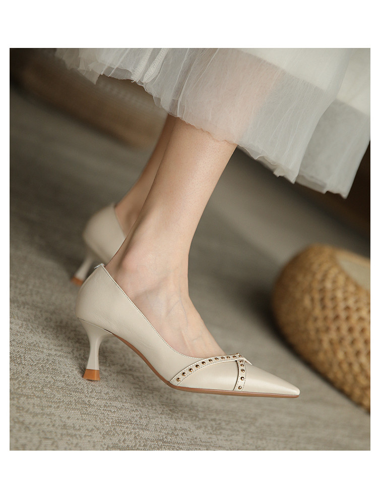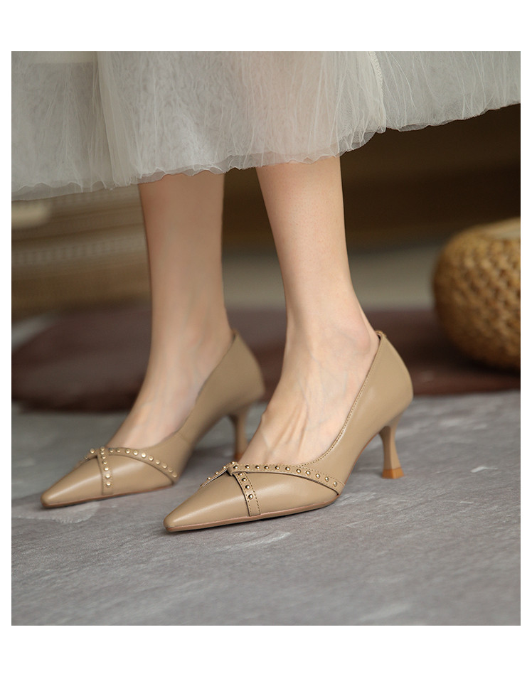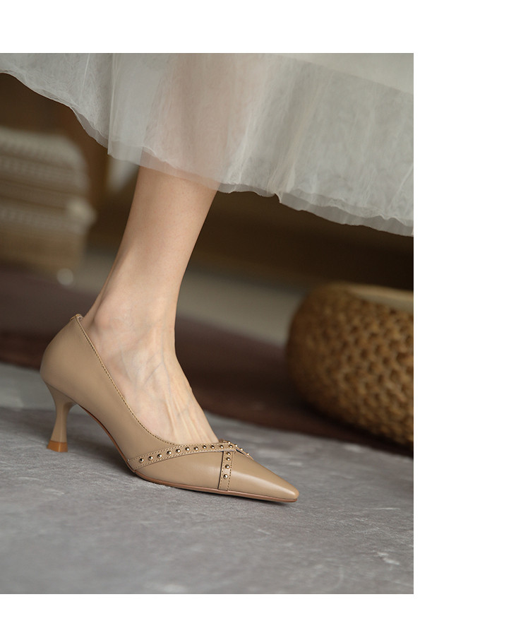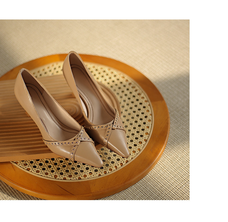 Обувь с заостренным носом, универсальные туфли на высоком каблуке, 2023, французский ретро стиль, из натуральной кожи