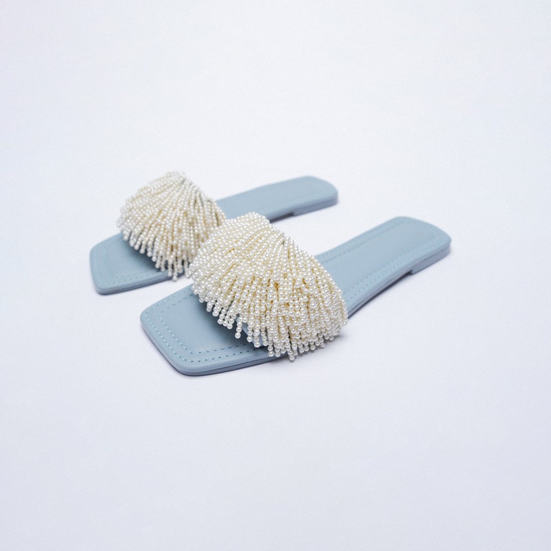 Baniyou, новинка весны и лета 2025, праздничные римские сандалии на плоской подошве с жемчугом, женские универсальные сандалии для знаменитостей, корейская версия, ins