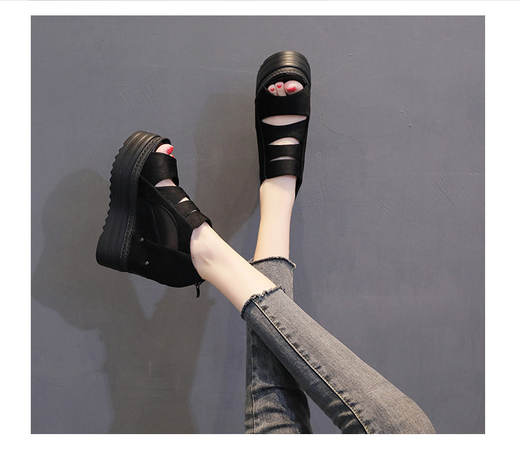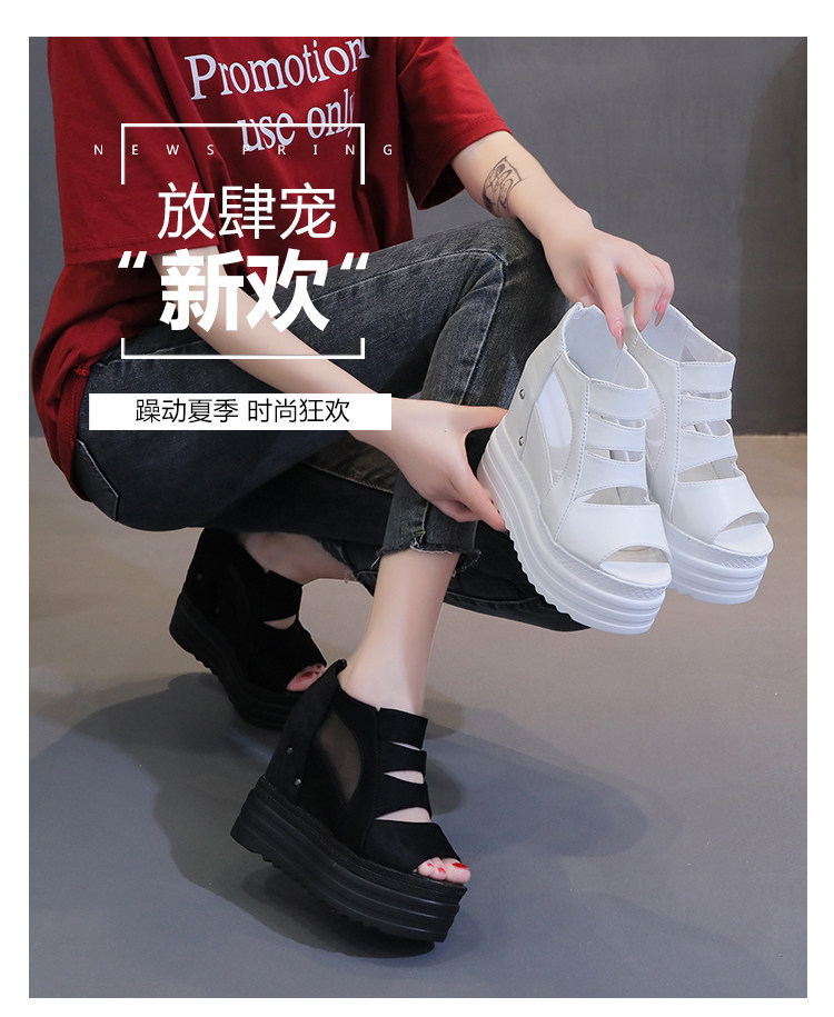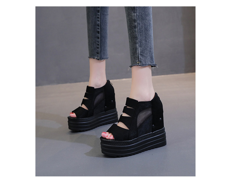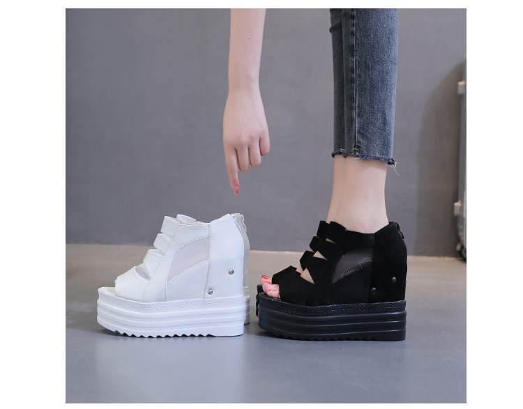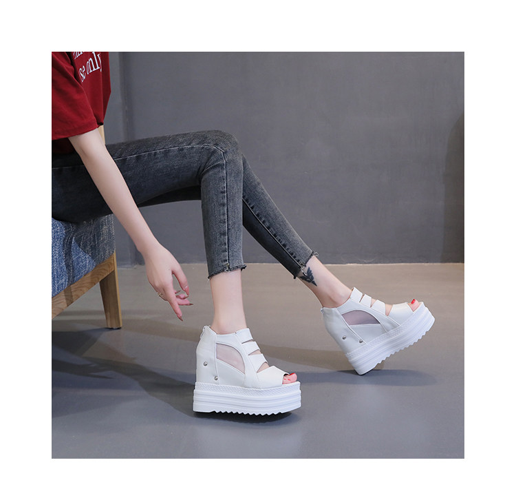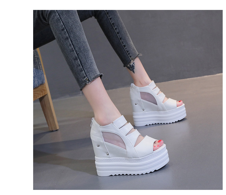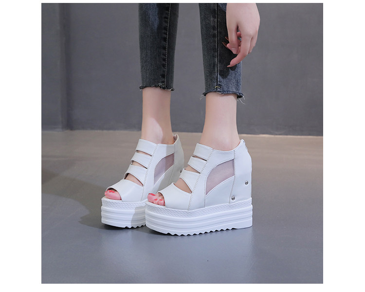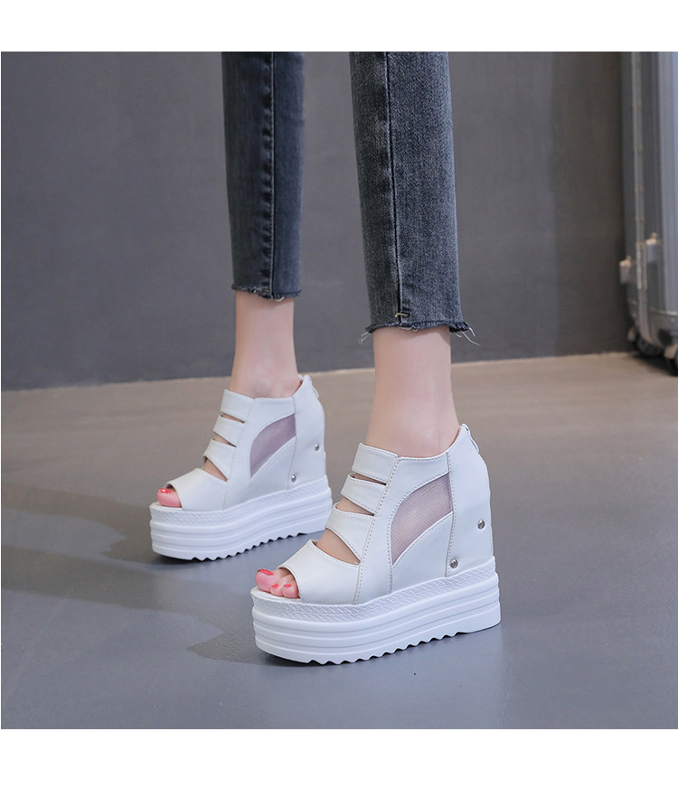 Летние полые римские сандалии на платформе, обувь с рыбьим ротом, женские повседневные модные сандалии на высоком каблуке, сетка на толстой подошве 12 см