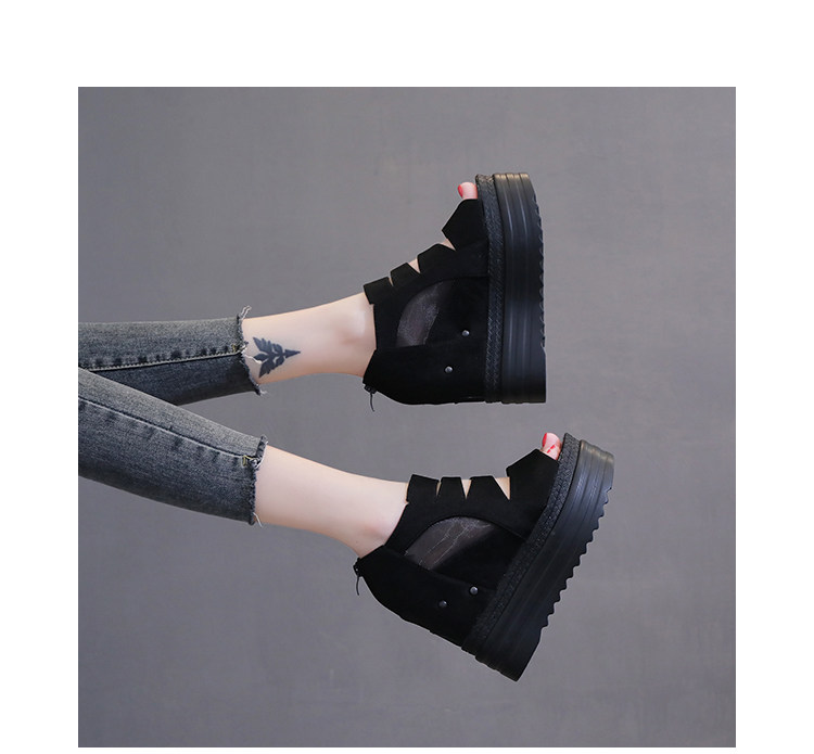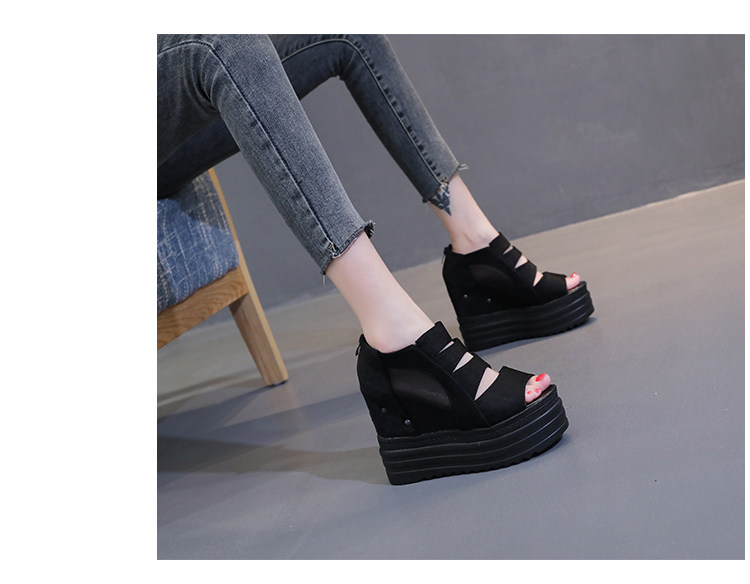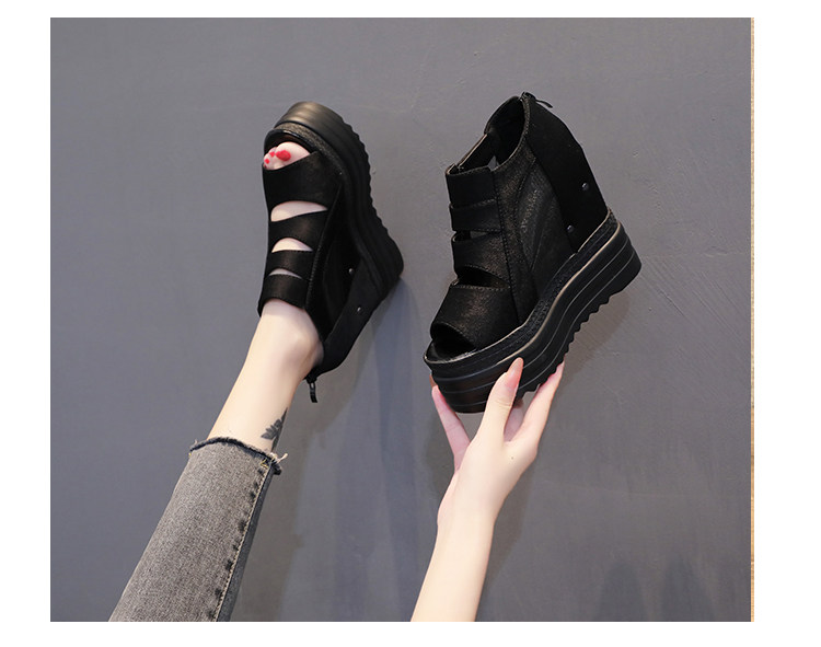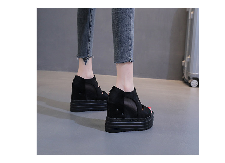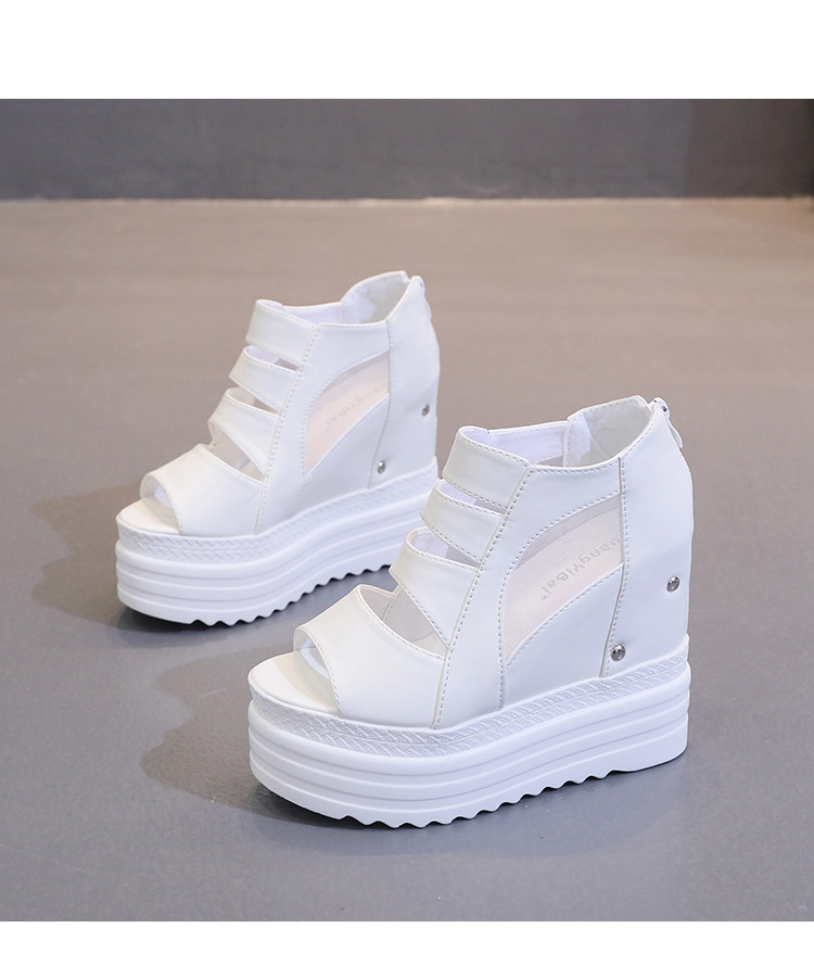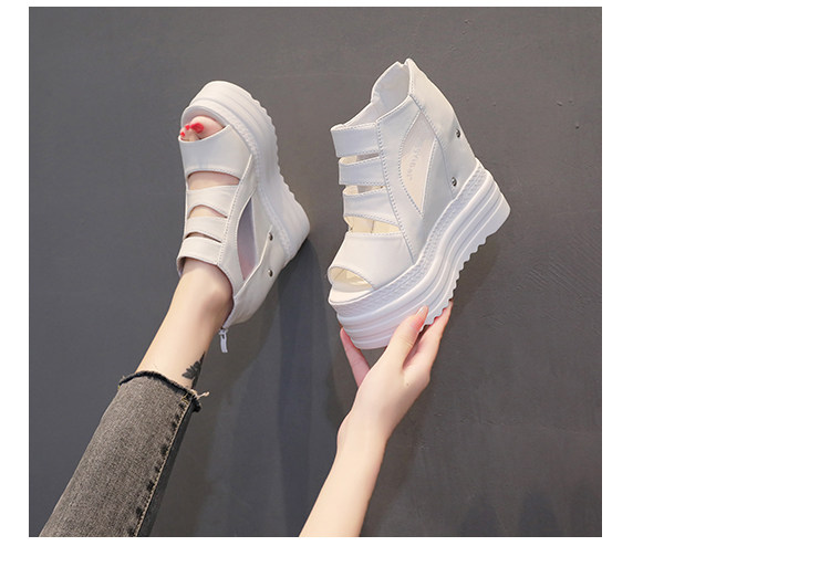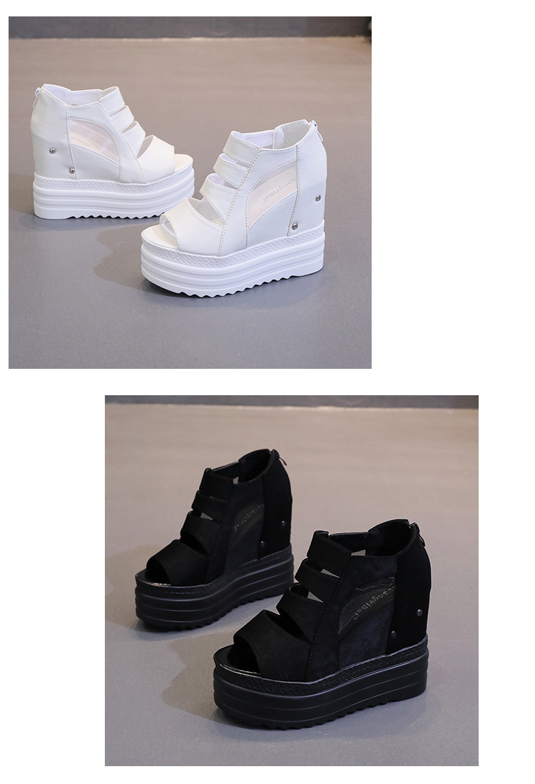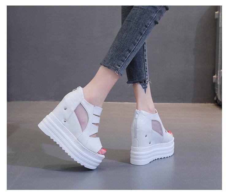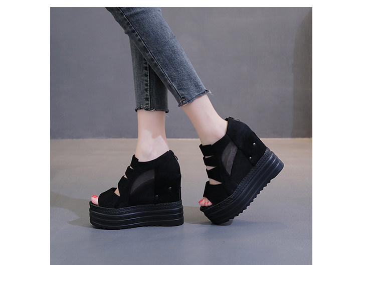 Летние полые римские сандалии на платформе, обувь с рыбьим ротом, женские повседневные модные сандалии на высоком каблуке, сетка на толстой подошве 12 см