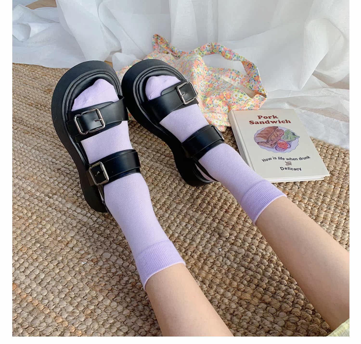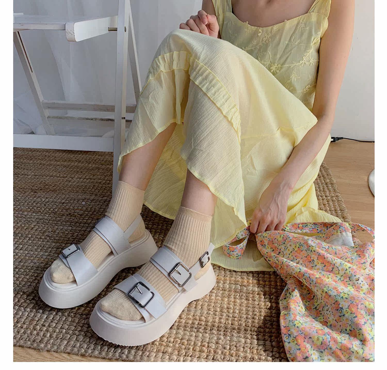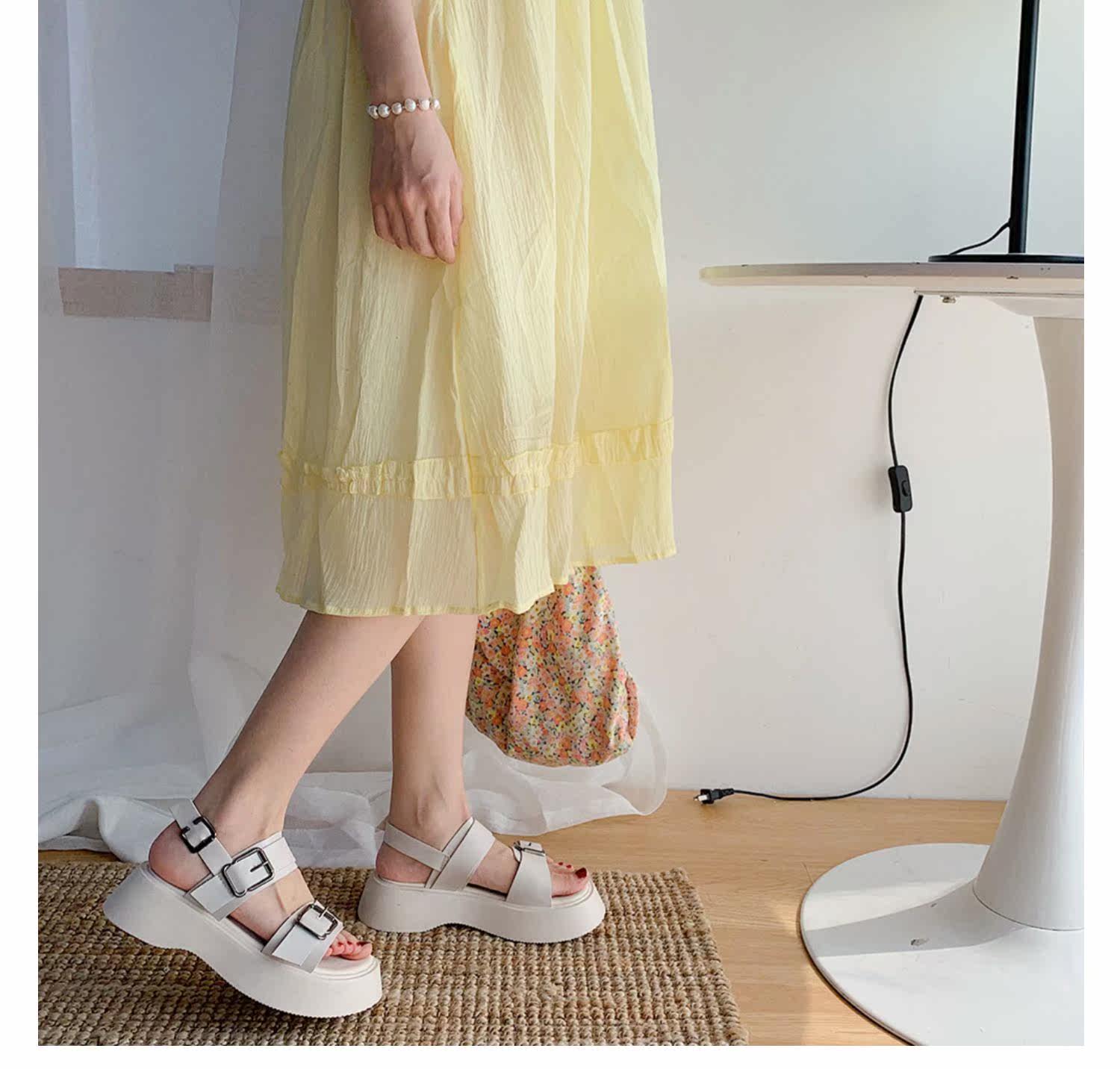 Сандалии, обувь на платформе, летний универсальный свежий ремень, пряжка, 2021 года, в корейском стиле