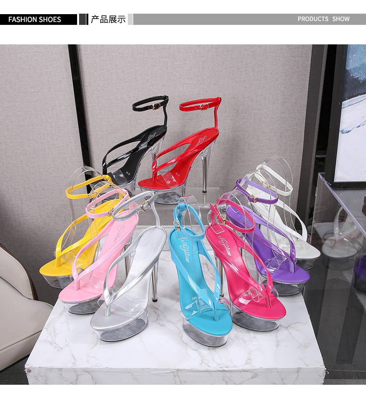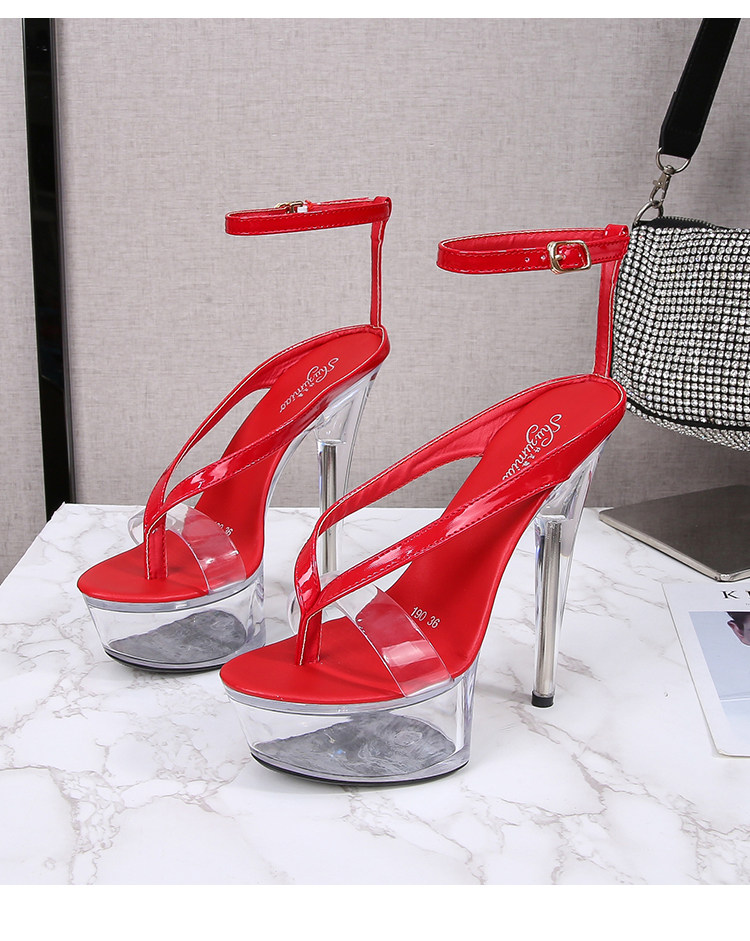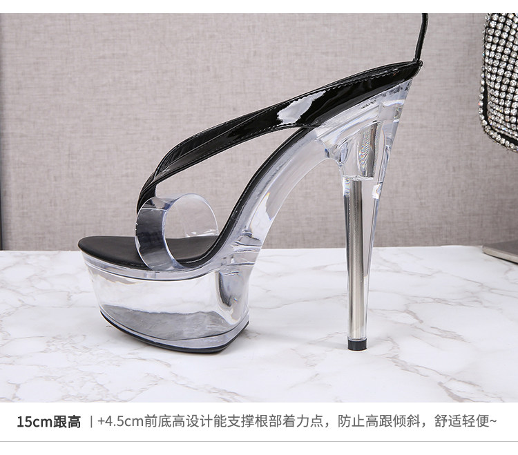 Прозрачная хрустальная туфли с высоким уровнем высокого уровня 15 см Ультра -высокая плотная водонепроницаем