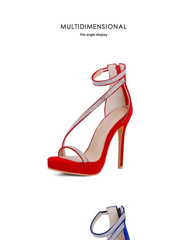 Европейские и американские красные сандалии на очень высоком каблуке, внешняя торговля, женская обувь, очень большой размер 44454650, женская молния сзади, матовый толстый корень, рыбий рот