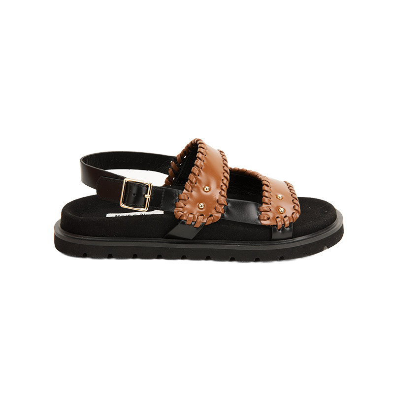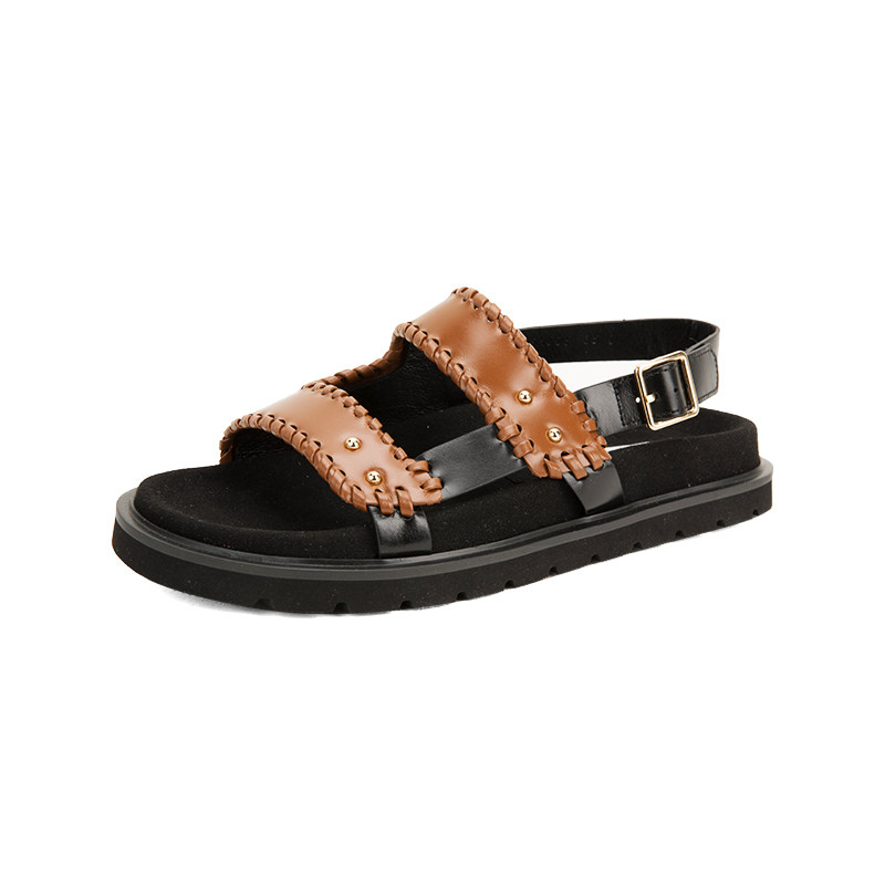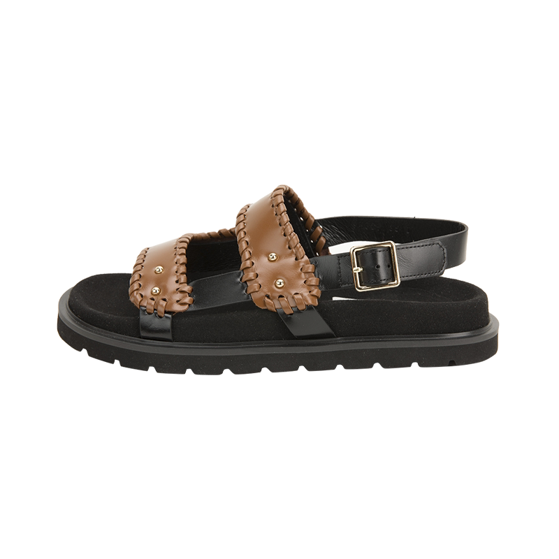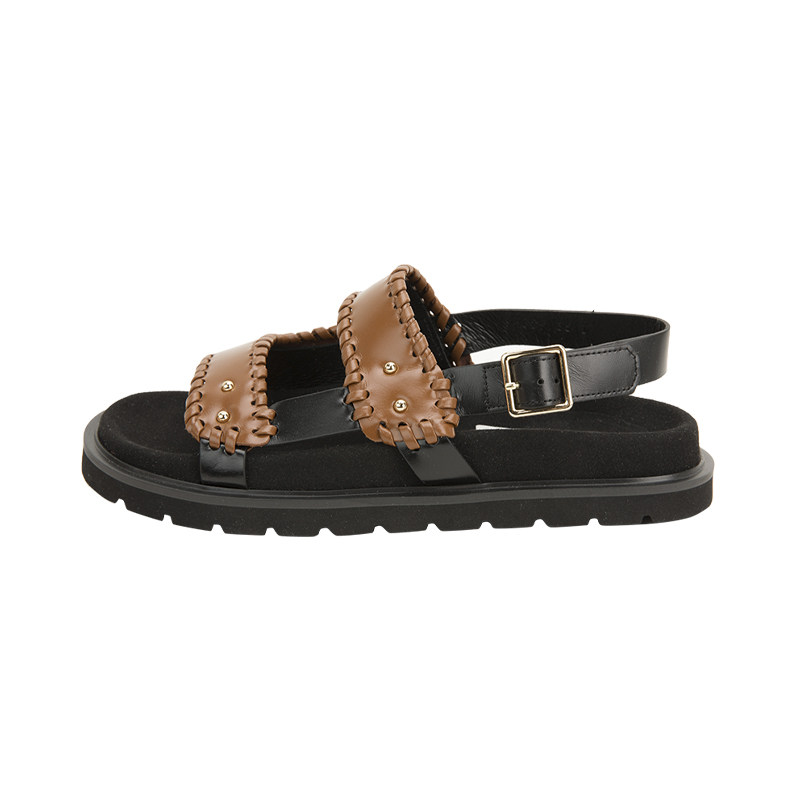 Коричневая кожаная сумка, дизайнерская лента, босоножки