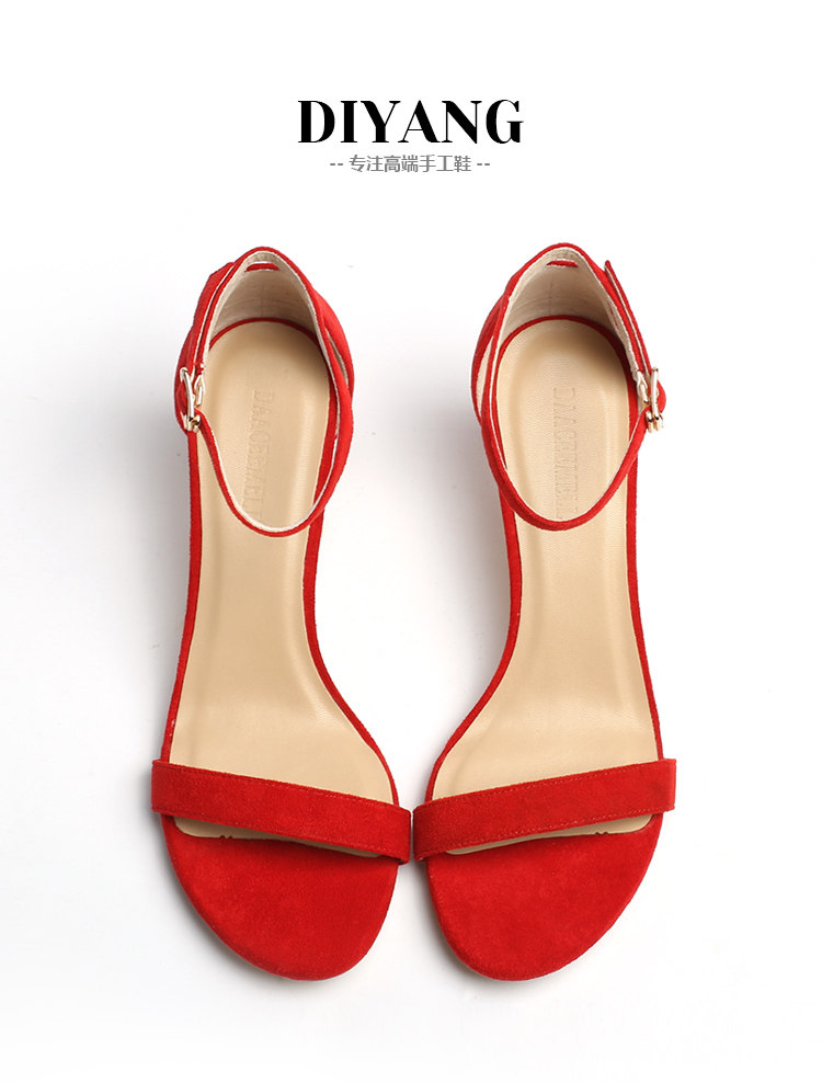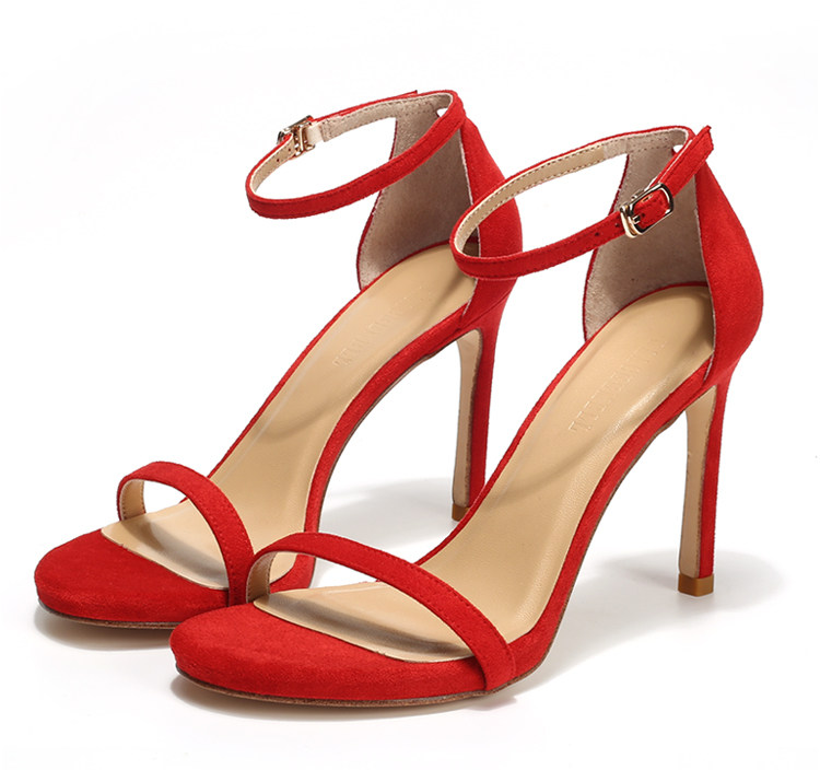 Летняя красная черная пряжка с ремешком, босоножки, туфли на высоком каблуке, популярно в интернете