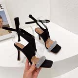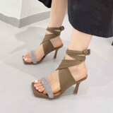 Модный стразы Защита пересекает ремни римские тонкие каблуки с высокой высокой высотой сандалии женские сандалии Lazada