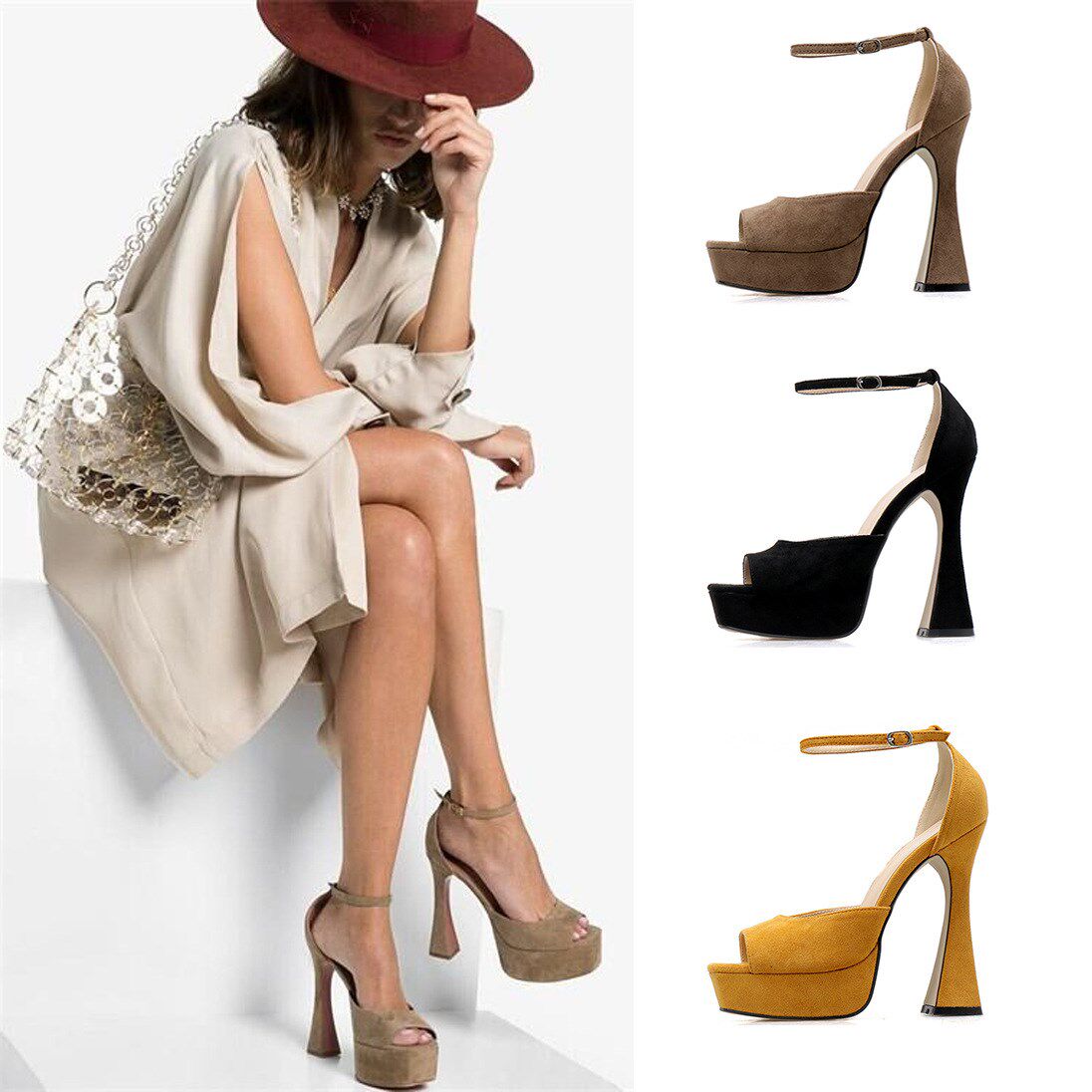2020 женская обувь из водонепроницаемой замши «рыбий рот» с прохладной отделкой