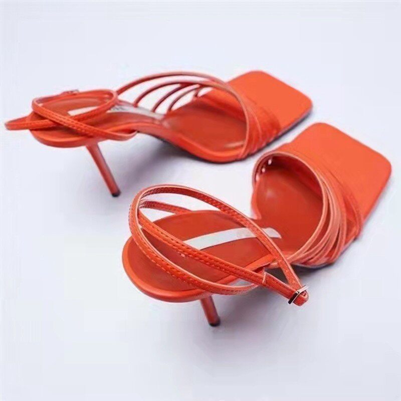 Модные босоножки, 2022, Испания, тренд сезона, тонкий ремешок, яркий броский стиль
