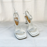 - Белый низкий каблук высотой 6 см.