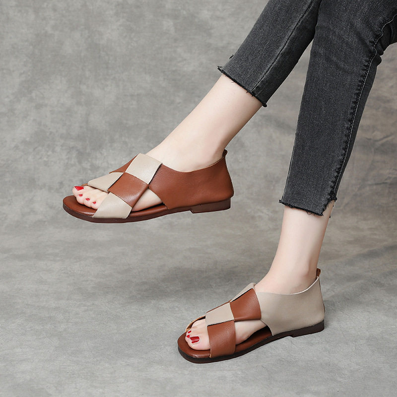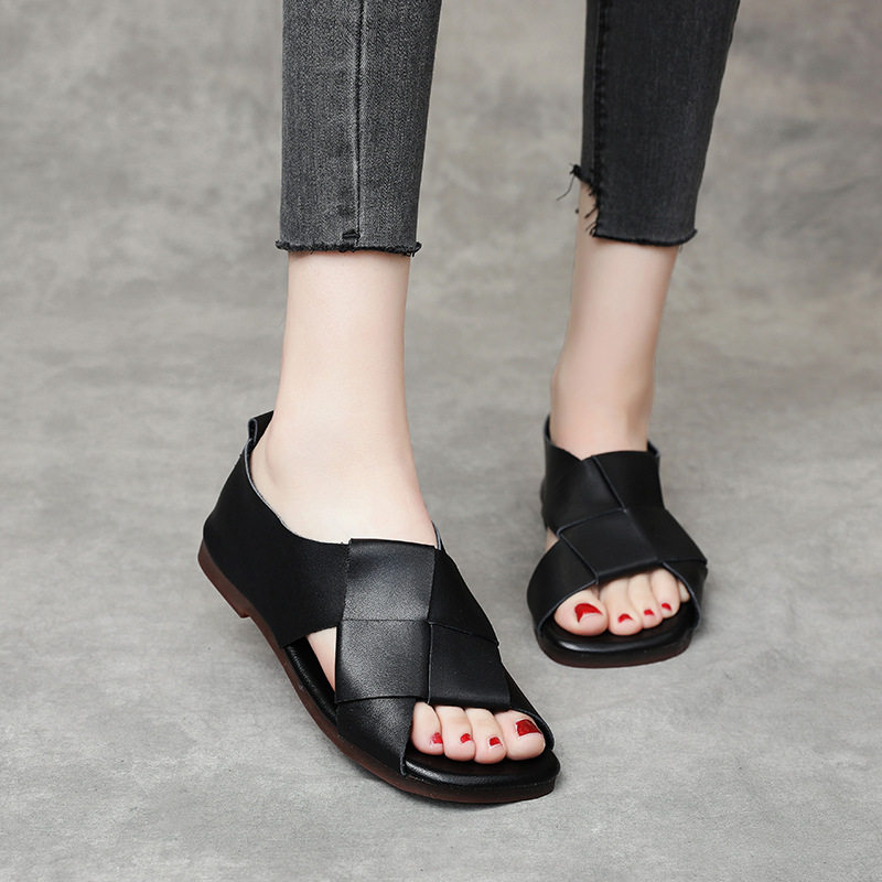 Сандалии, летняя кожаная обувь, из натуральной кожи, 2023, воловья кожа, мягкая подошва