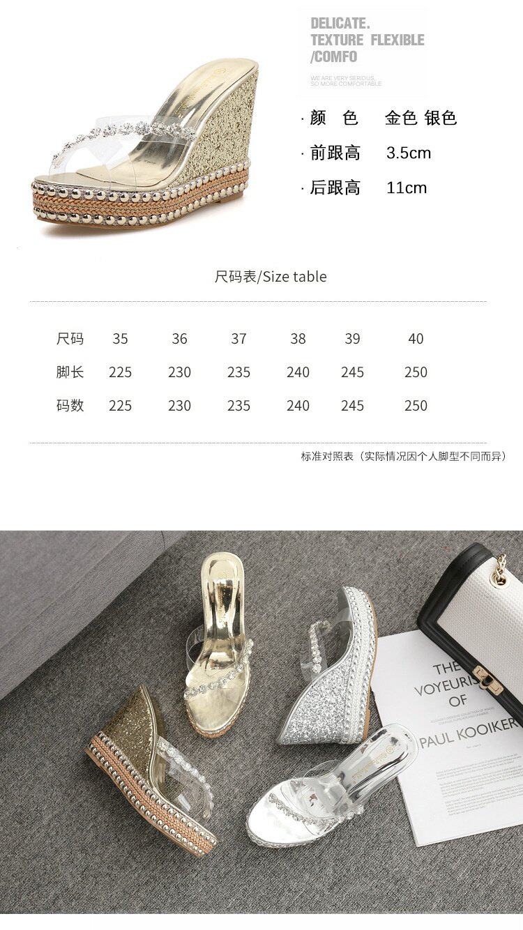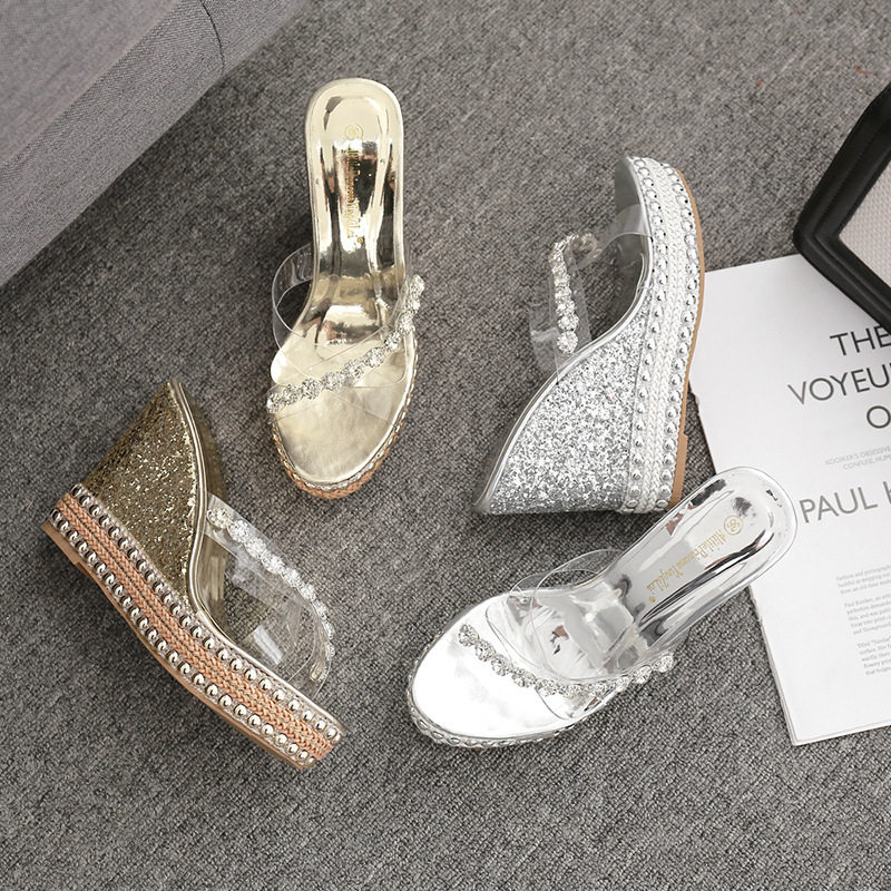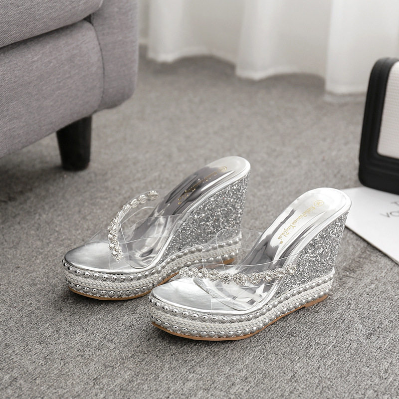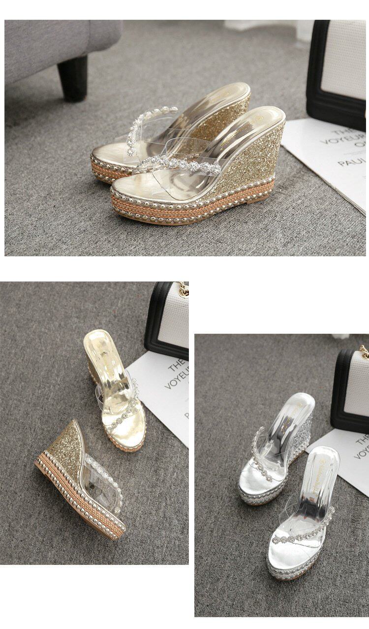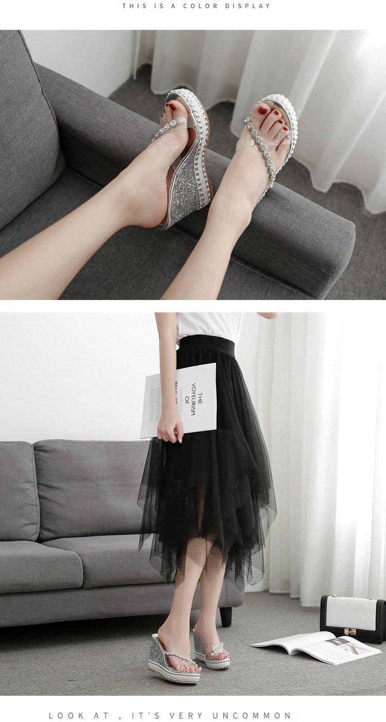 Водостойкие туфли на высоком каблуке, прозрачные высокие сандалии на платформе, универсальные блестки для ногтей, тапочки, обувь, 10см