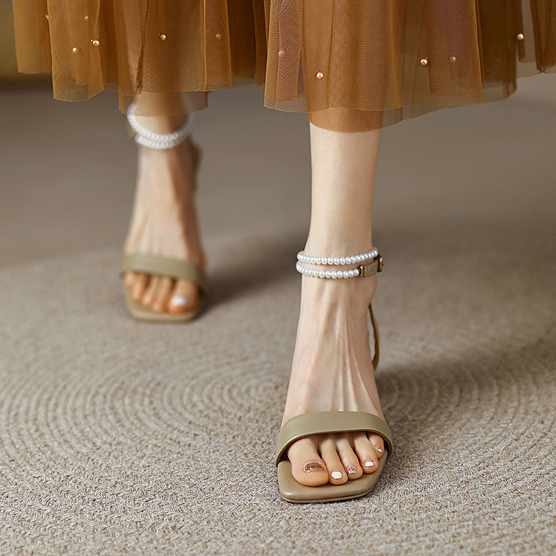 Летние босоножки, туфли на высоком каблуке с ремешком, коллекция 2022, из натуральной кожи