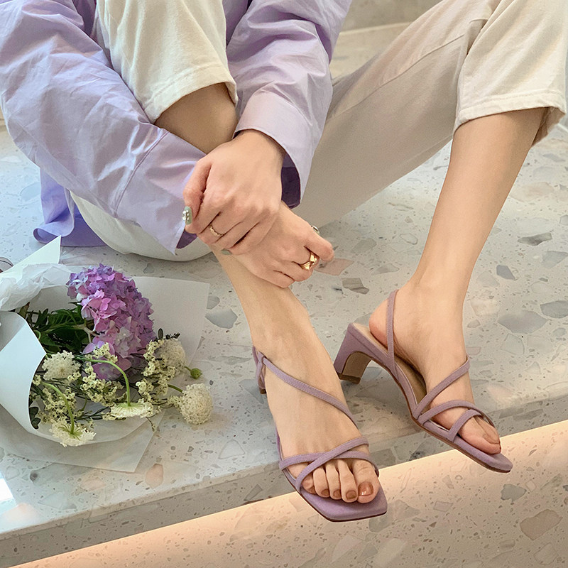 Летние сиреневые босоножки, туфли на высоком каблуке, 2024 года, тонкий ремешок