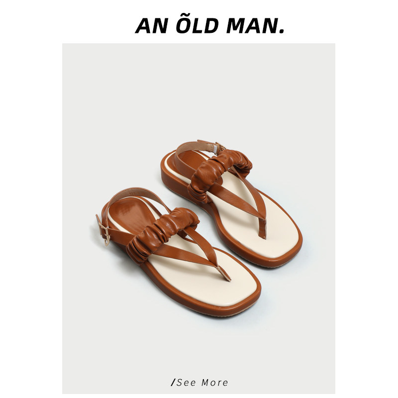 Сандалии на толстой подошве на плоской подошве «Старый мужчина», 2023, новые женские сандалии с ремешками во французском темпераменте для летней одежды