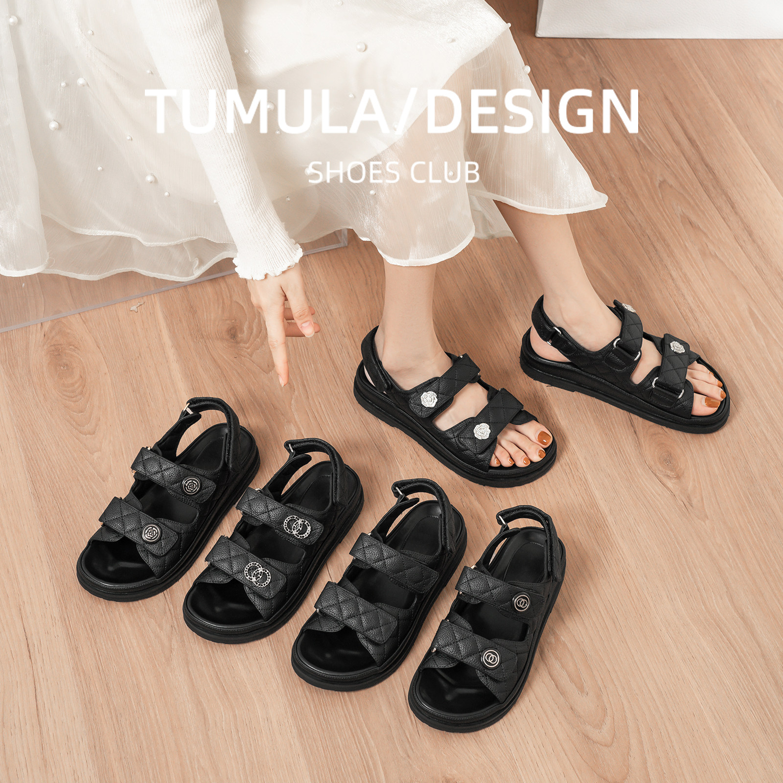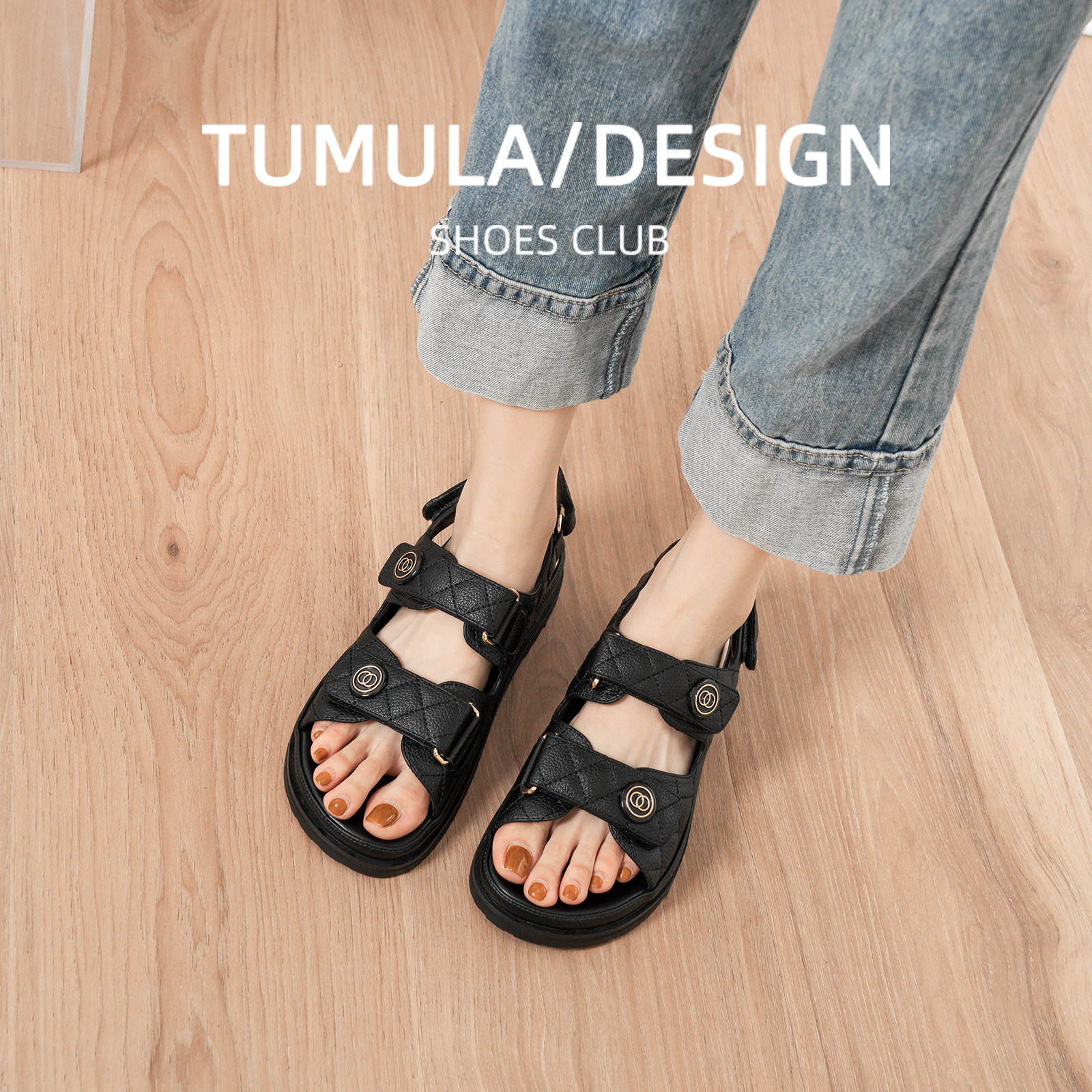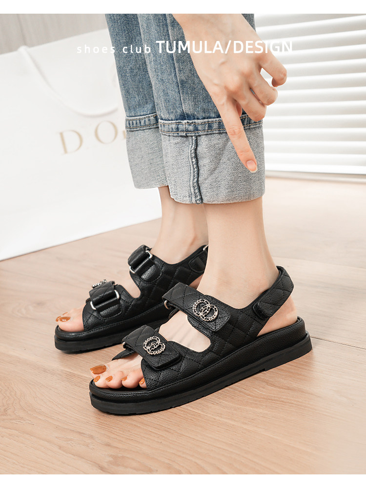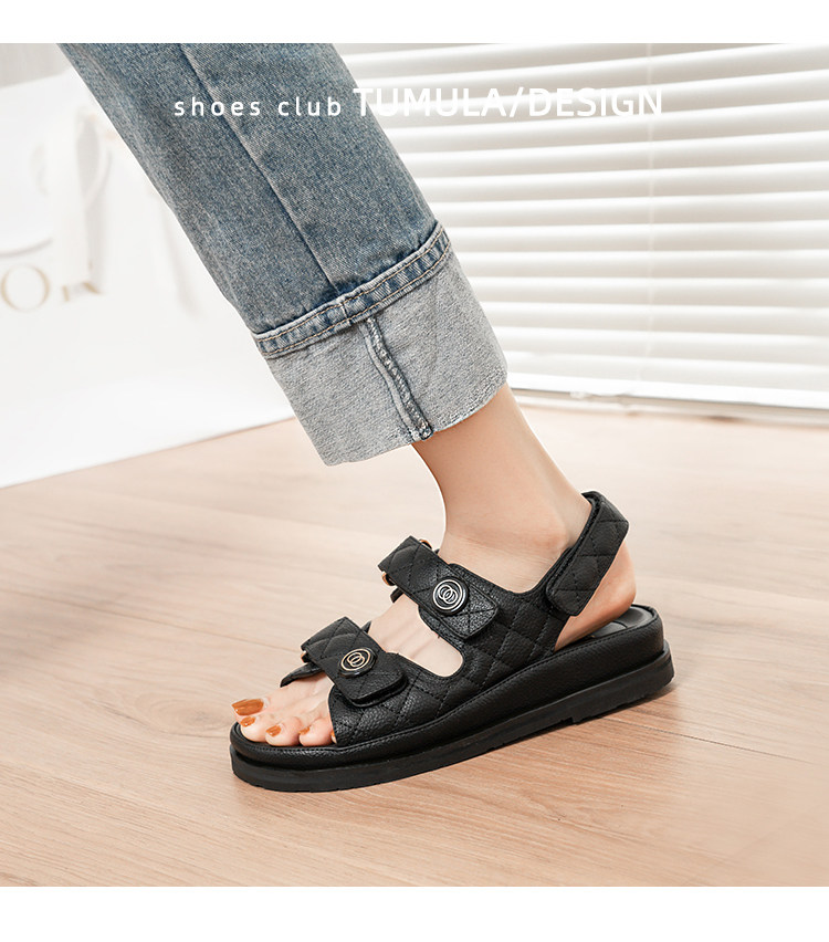 Летняя обувь на липучке на платформе, модные сандалии для отдыха, 2023, популярно в интернете, в стиле Шанель