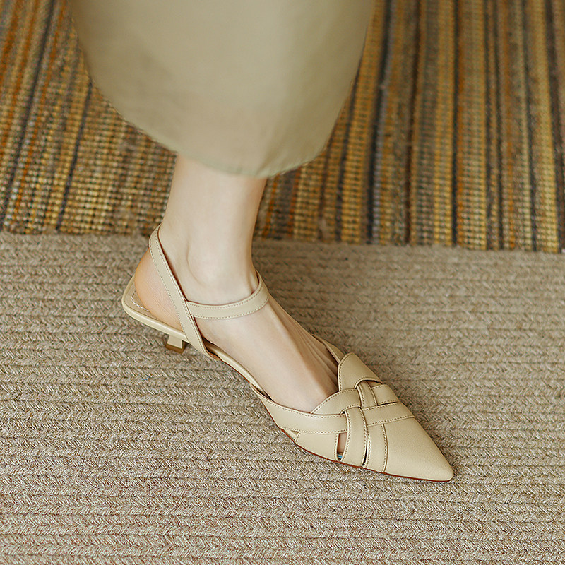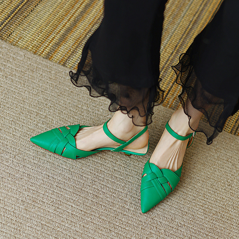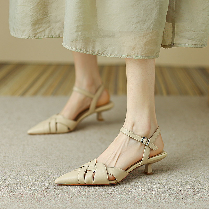 Ретро плетеные летние босоножки, французский стиль, из натуральной кожи