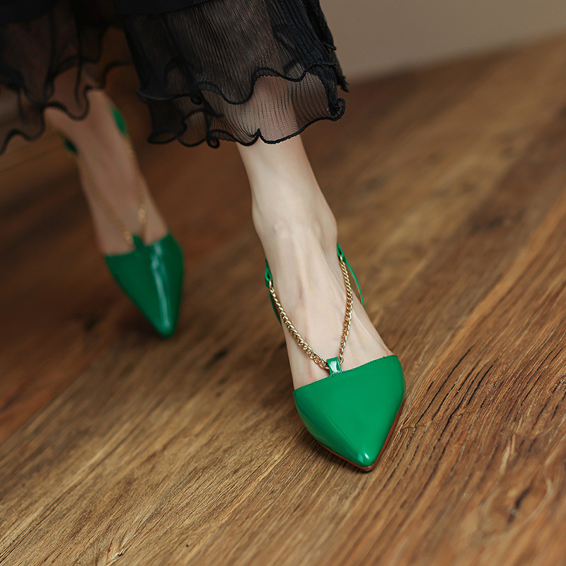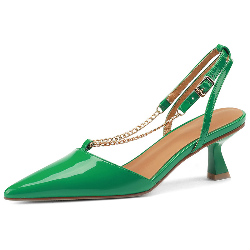 非侈 Оригинальные зеленые босоножки с ремешком, туфли на высоком каблуке, из натуральной кожи
