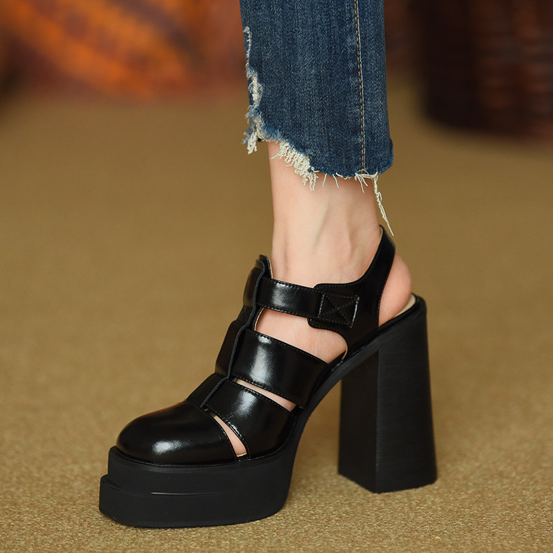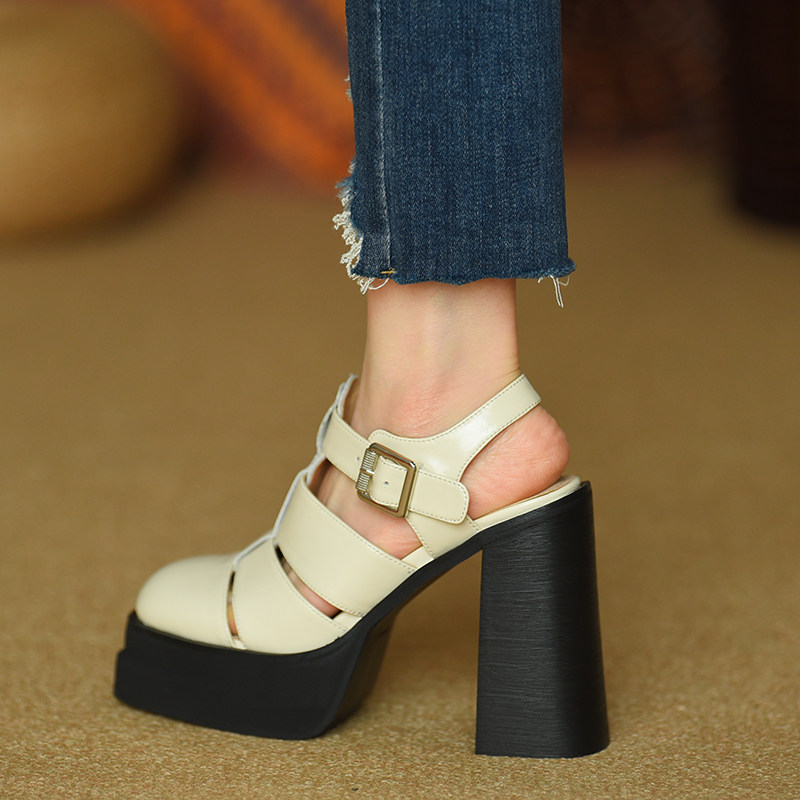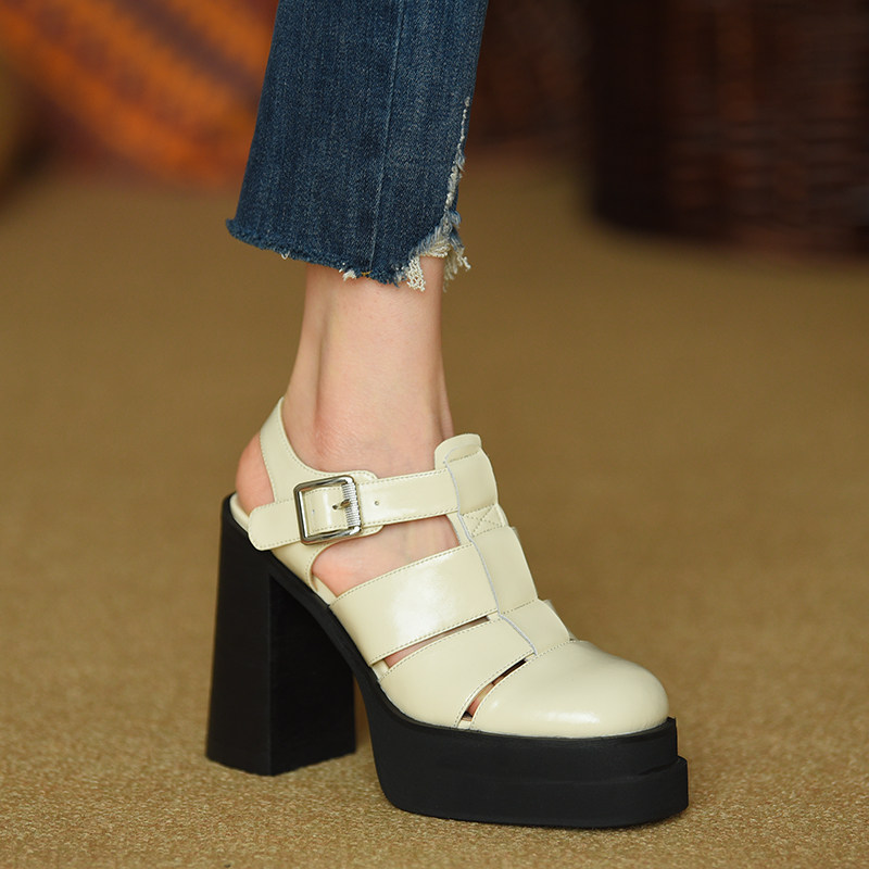 Ретро босоножки, летние туфли на высоком каблуке, из натуральной кожи, 2023