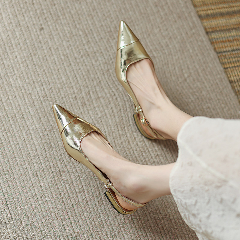 Золотые летние босоножки, из натуральной кожи, коллекция 2022, французский стиль