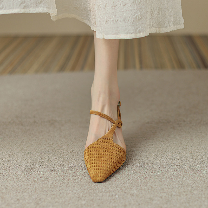 非侈 Оригинальные матовые босоножки, ретро желтые туфли на высоком каблуке, из натуральной кожи, 2023