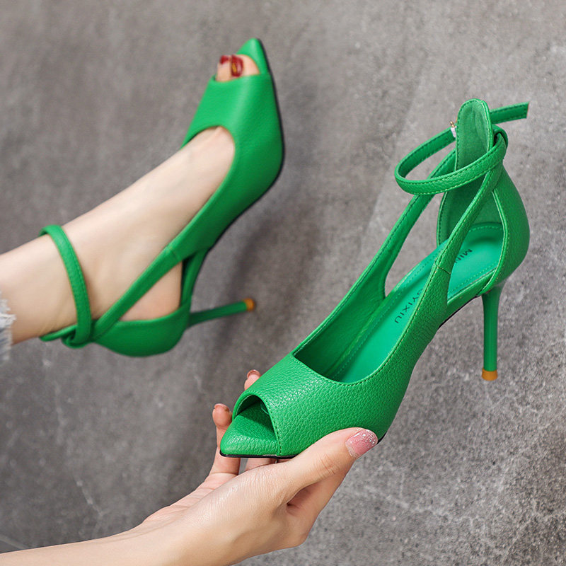 Туфли на высоком каблуке с ремешком, коллекция 2022, городской стиль, яркий броский стиль