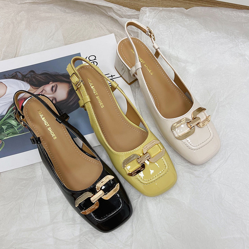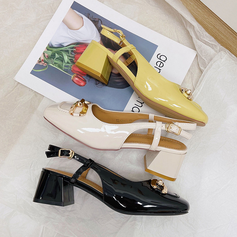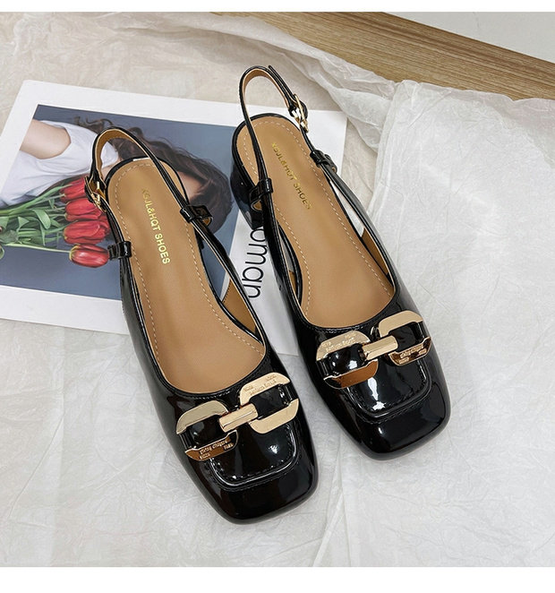 Посмотрите на французскую патентную кожу, головку высокопоставленных сандалий, кожаная кожаная бату, высокая каблука французской патентной кожи