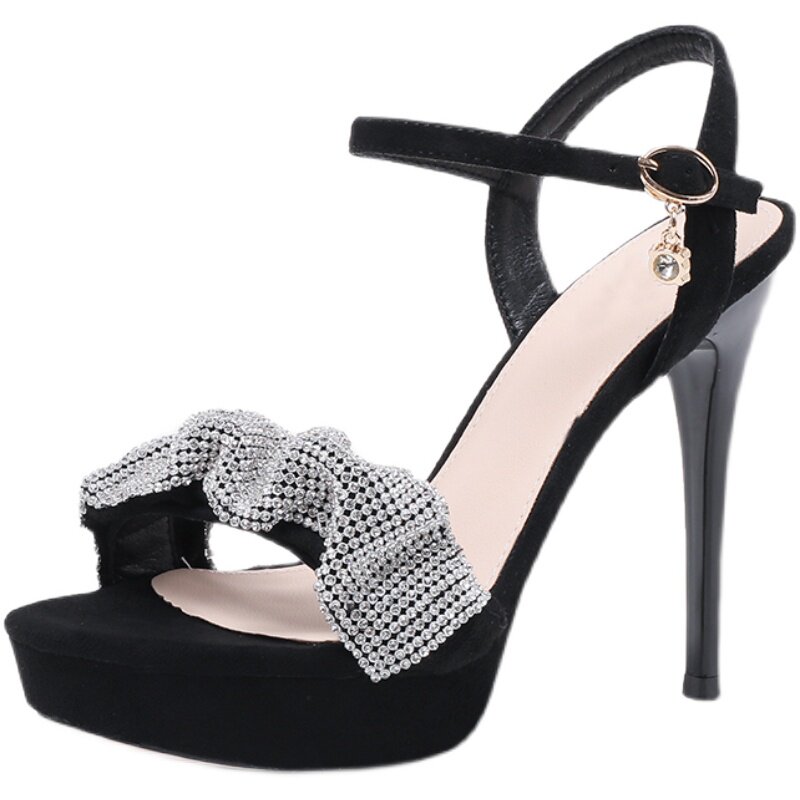 Новый супер высокий каблук 12 см, каблук-шпилька, открытый носок, водонепроницаемая платформа, каблук-шпилька, модель платья для банкета, подиума, корейский стиль, темперамент со стразами