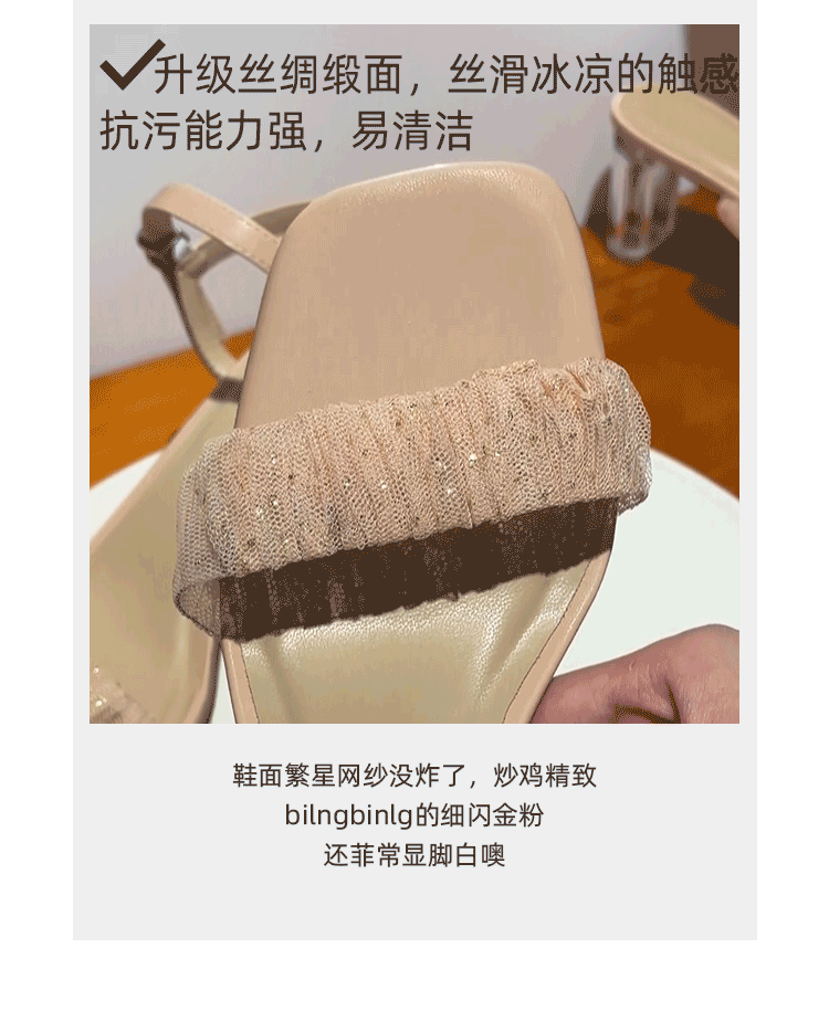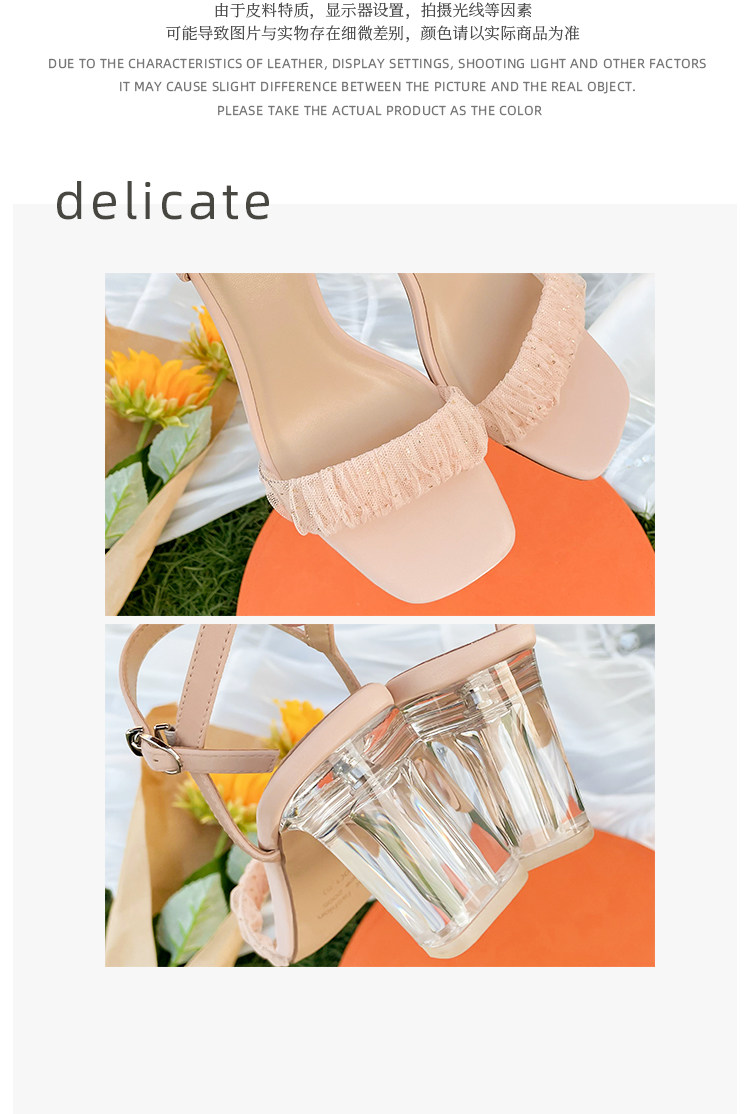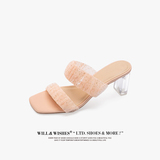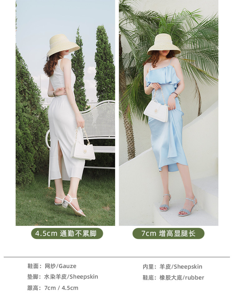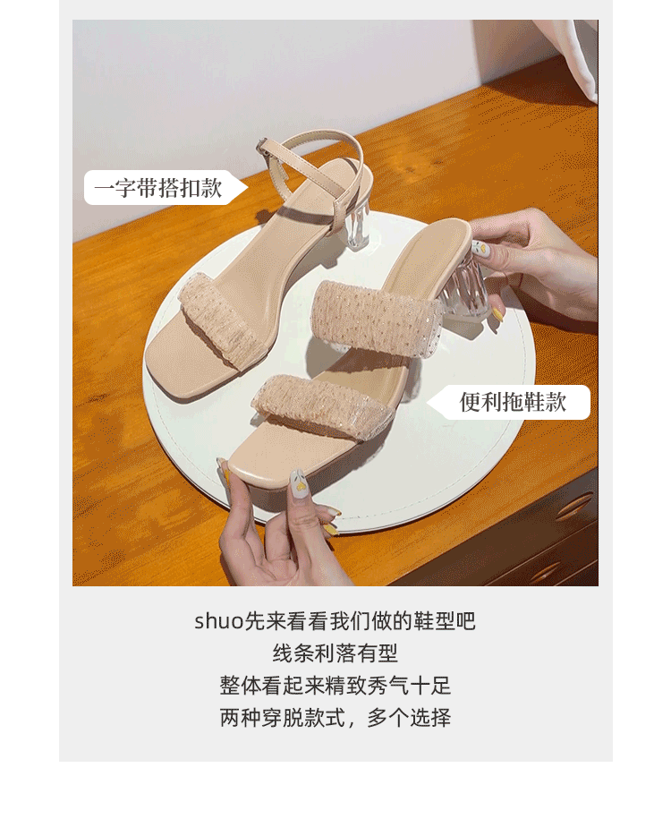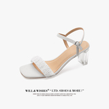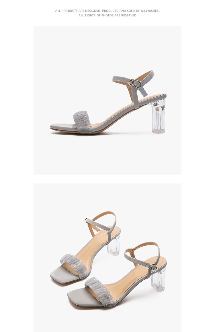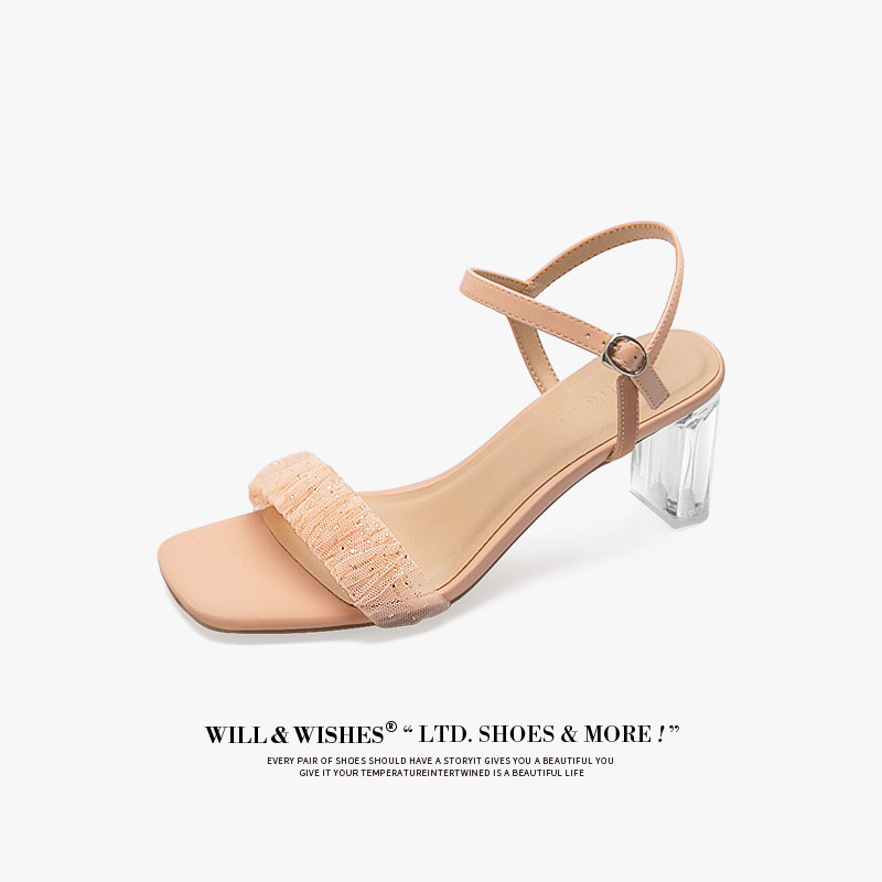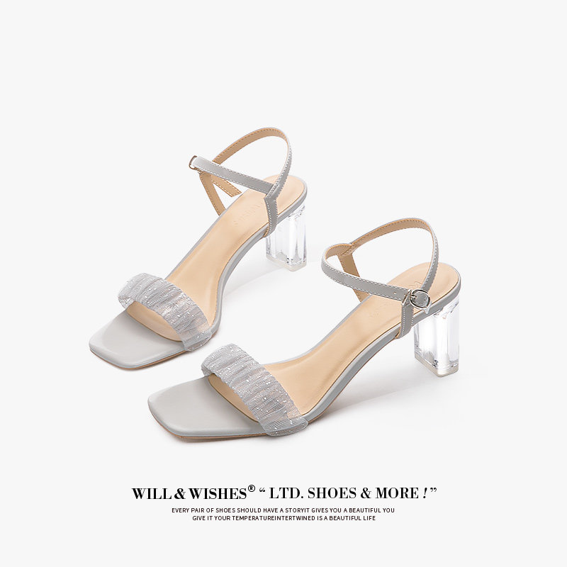 [Сломанный зазор кода] Модная открытая -туфли на высоких туфлях женская пряжка с сказочным ветром прозрачный хрустальный каблук сандалии самка лето
