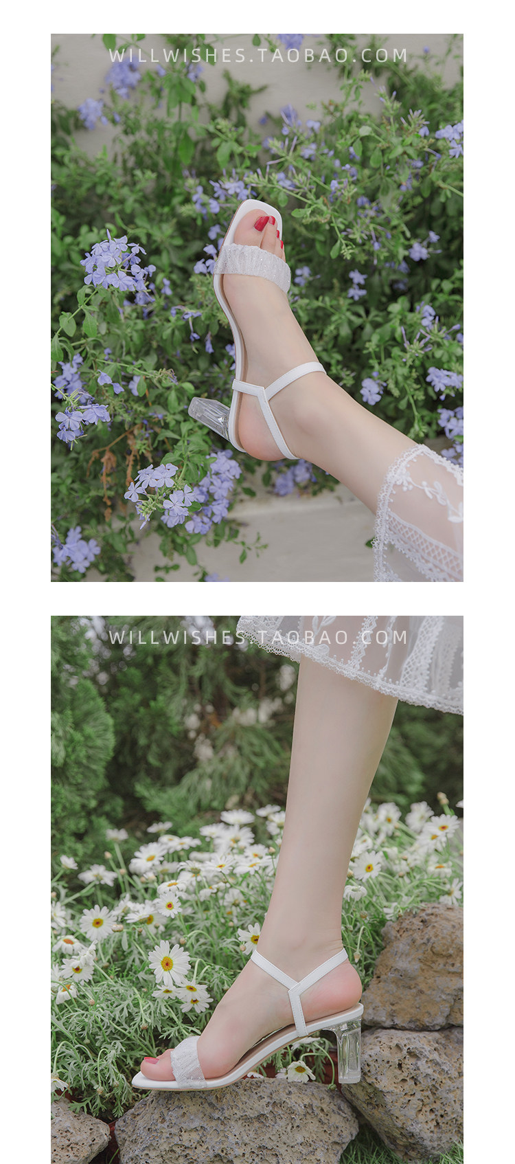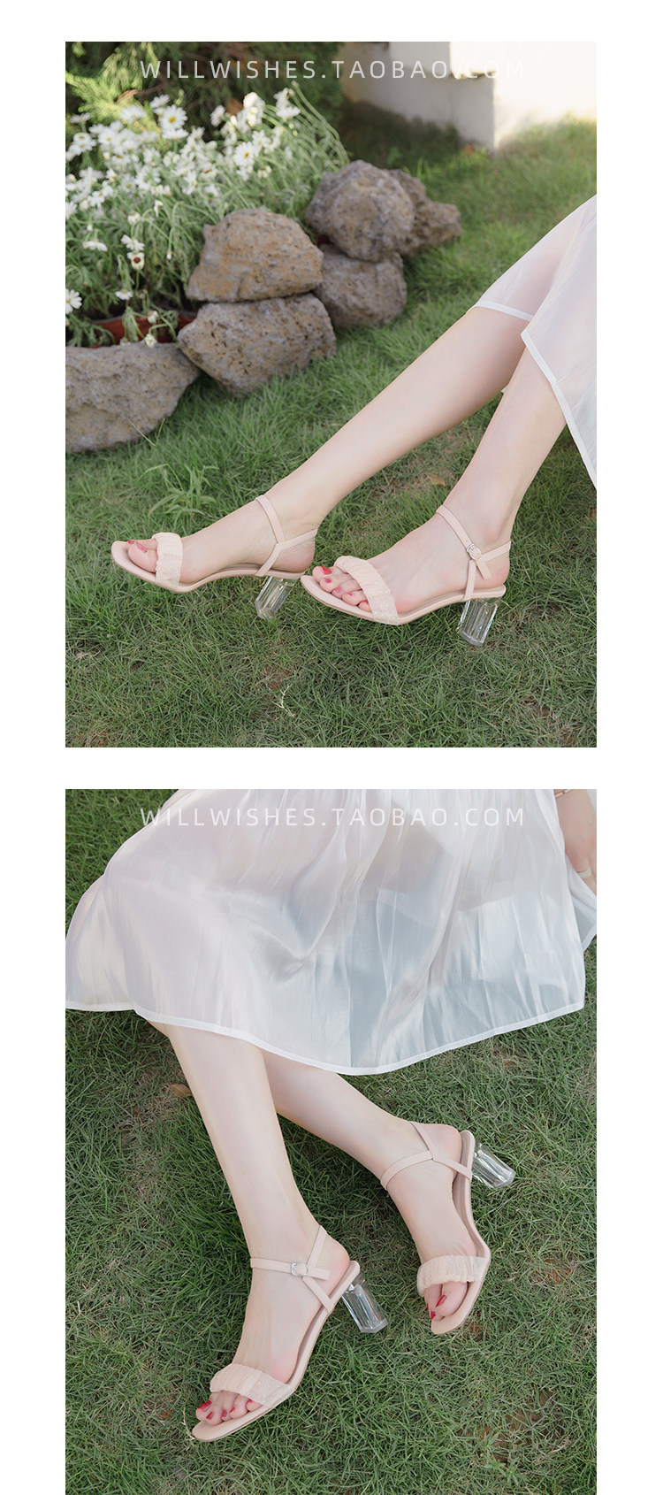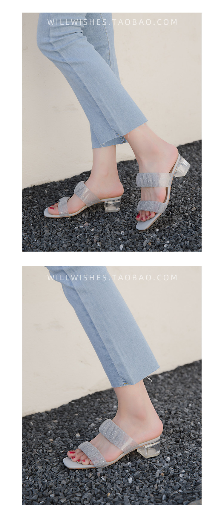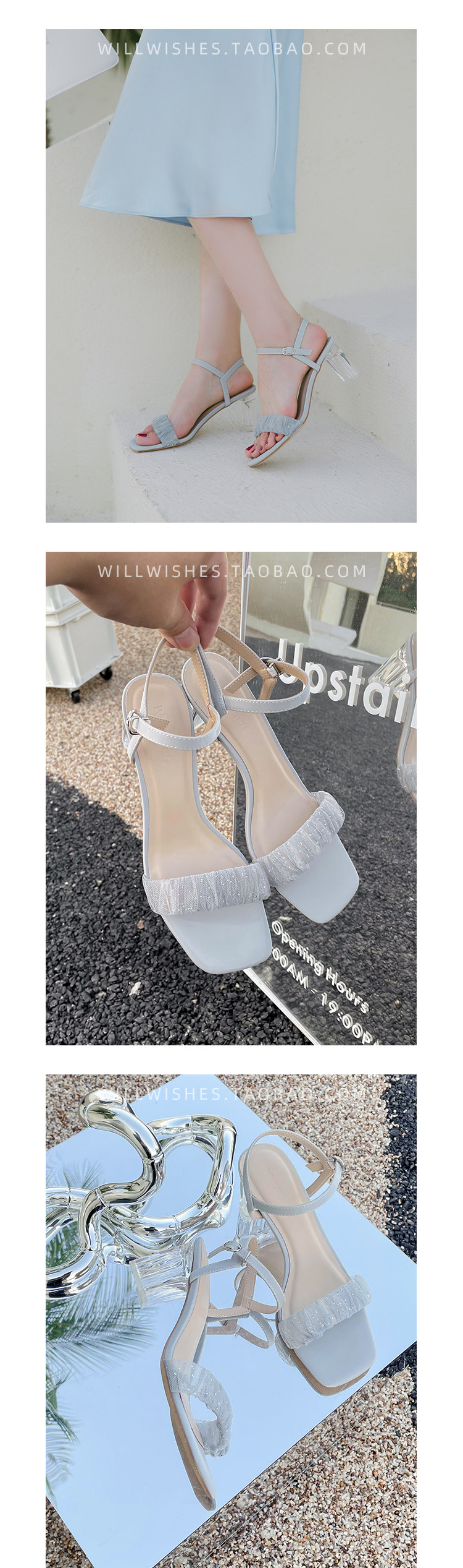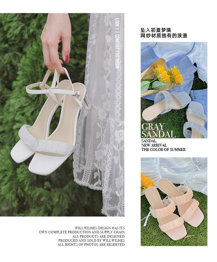 [Сломанный зазор кода] Модная открытая -туфли на высоких туфлях женская пряжка с сказочным ветром прозрачный хрустальный каблук сандалии самка лето