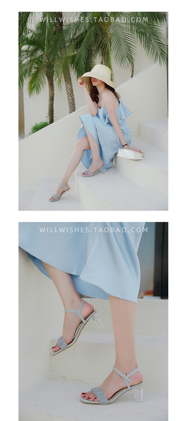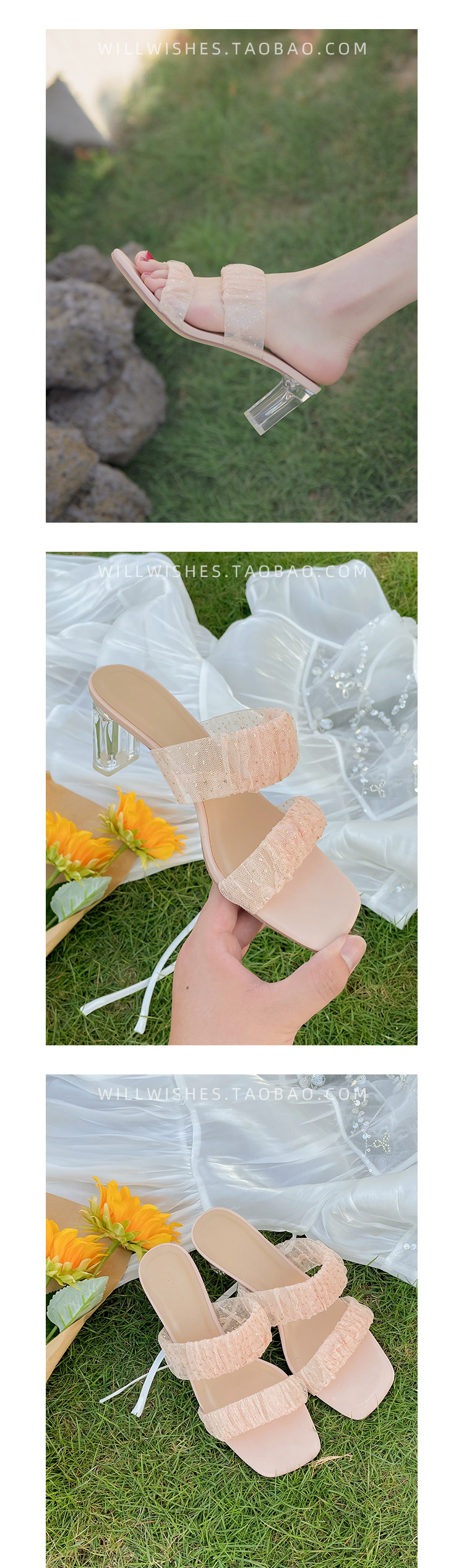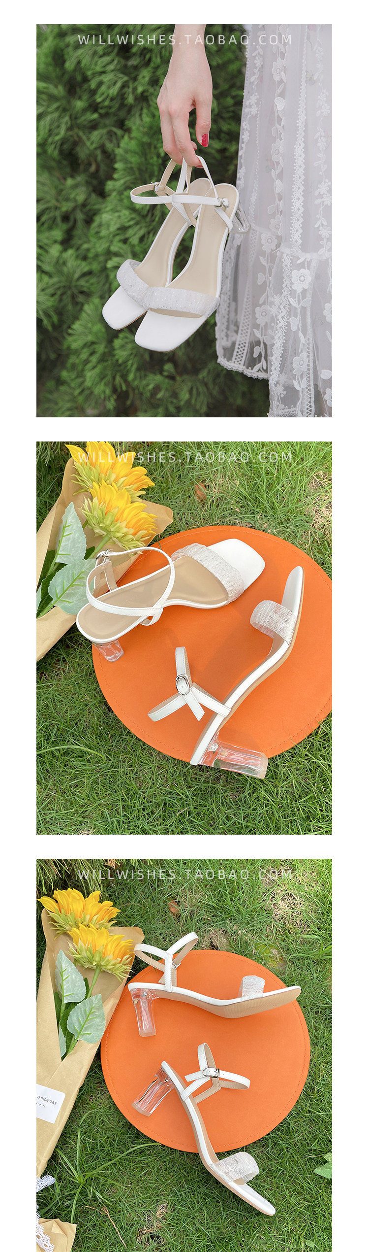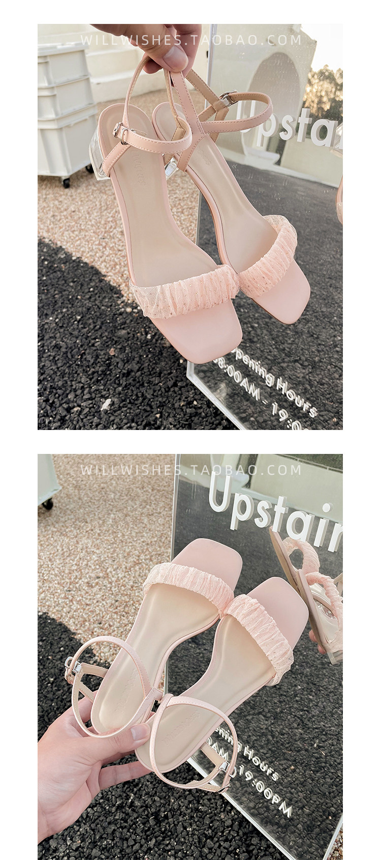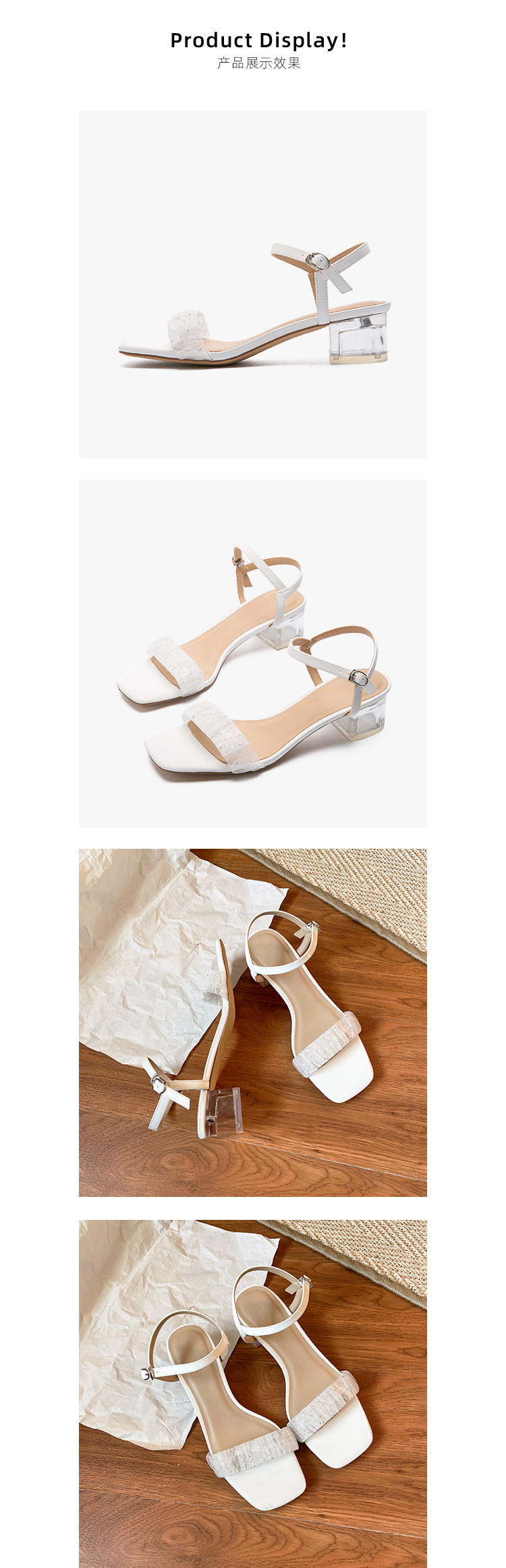 [Сломанный зазор кода] Модная открытая -туфли на высоких туфлях женская пряжка с сказочным ветром прозрачный хрустальный каблук сандалии самка лето