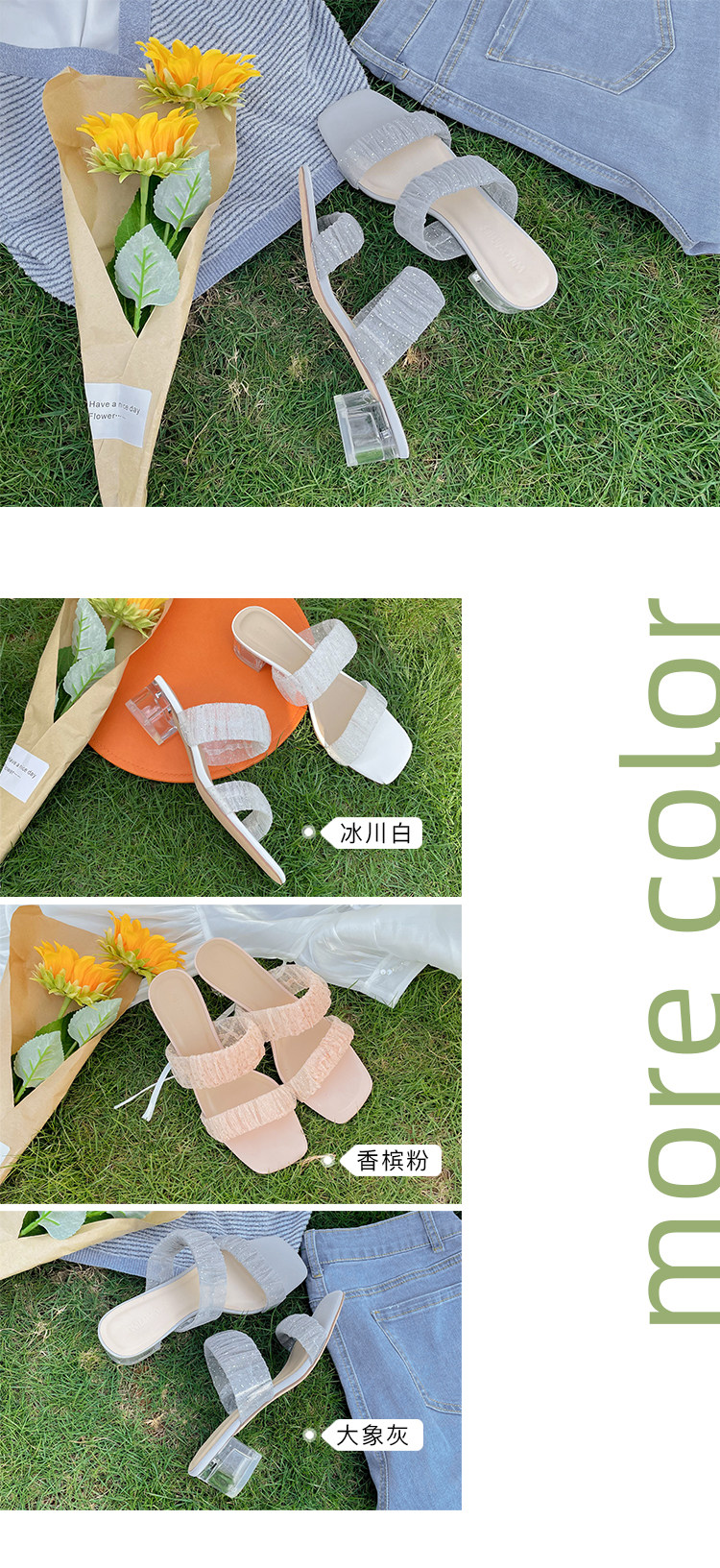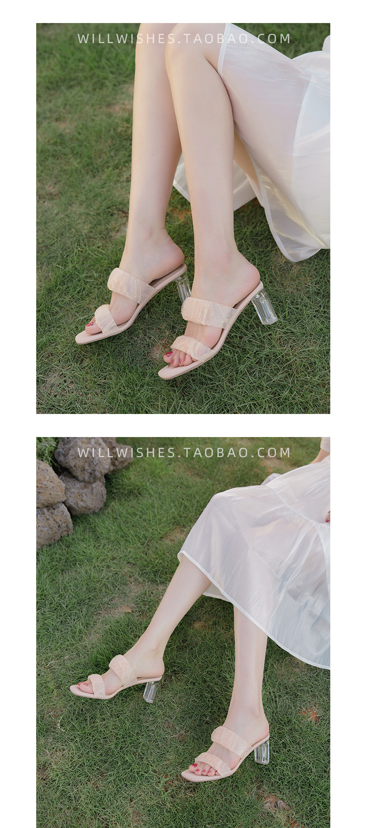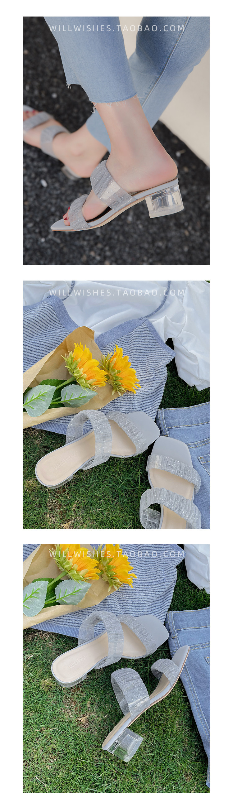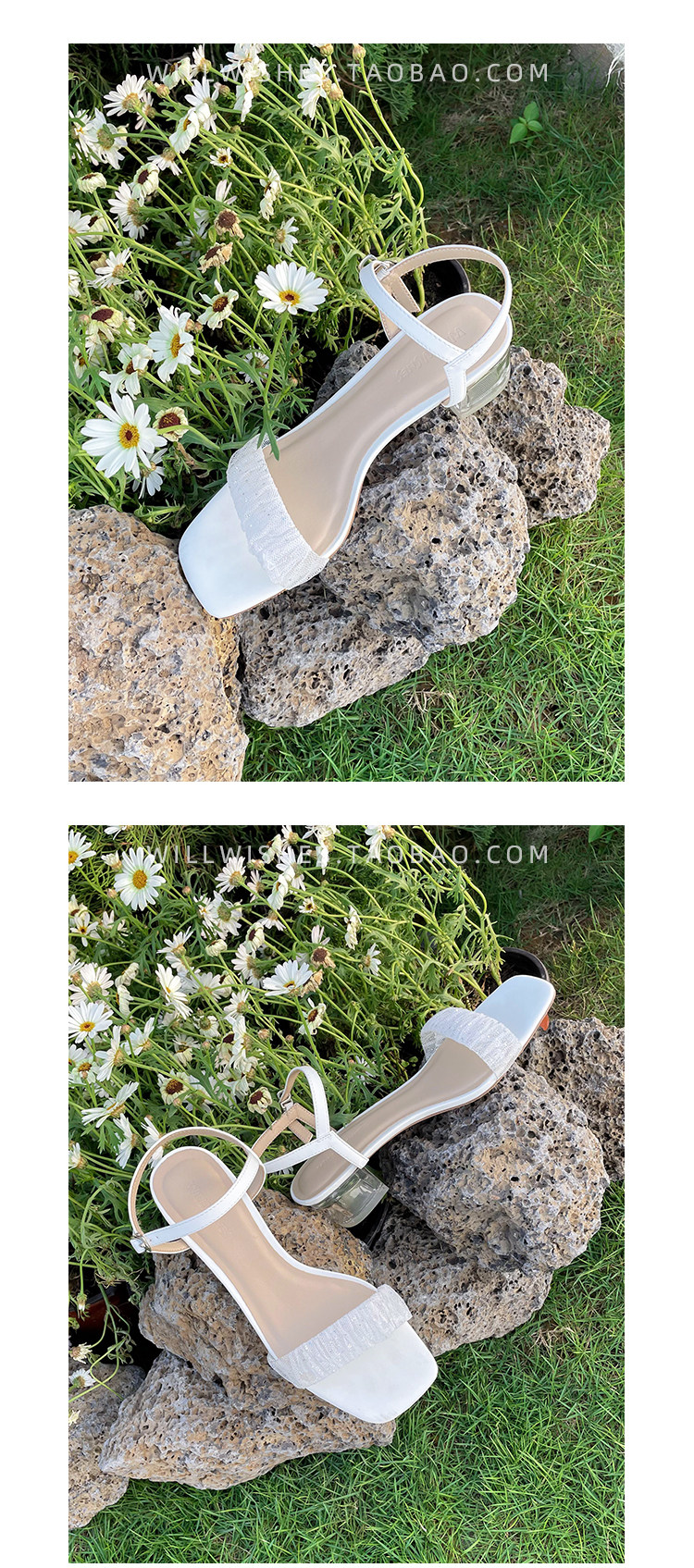 [Сломанный зазор кода] Модная открытая -туфли на высоких туфлях женская пряжка с сказочным ветром прозрачный хрустальный каблук сандалии самка лето