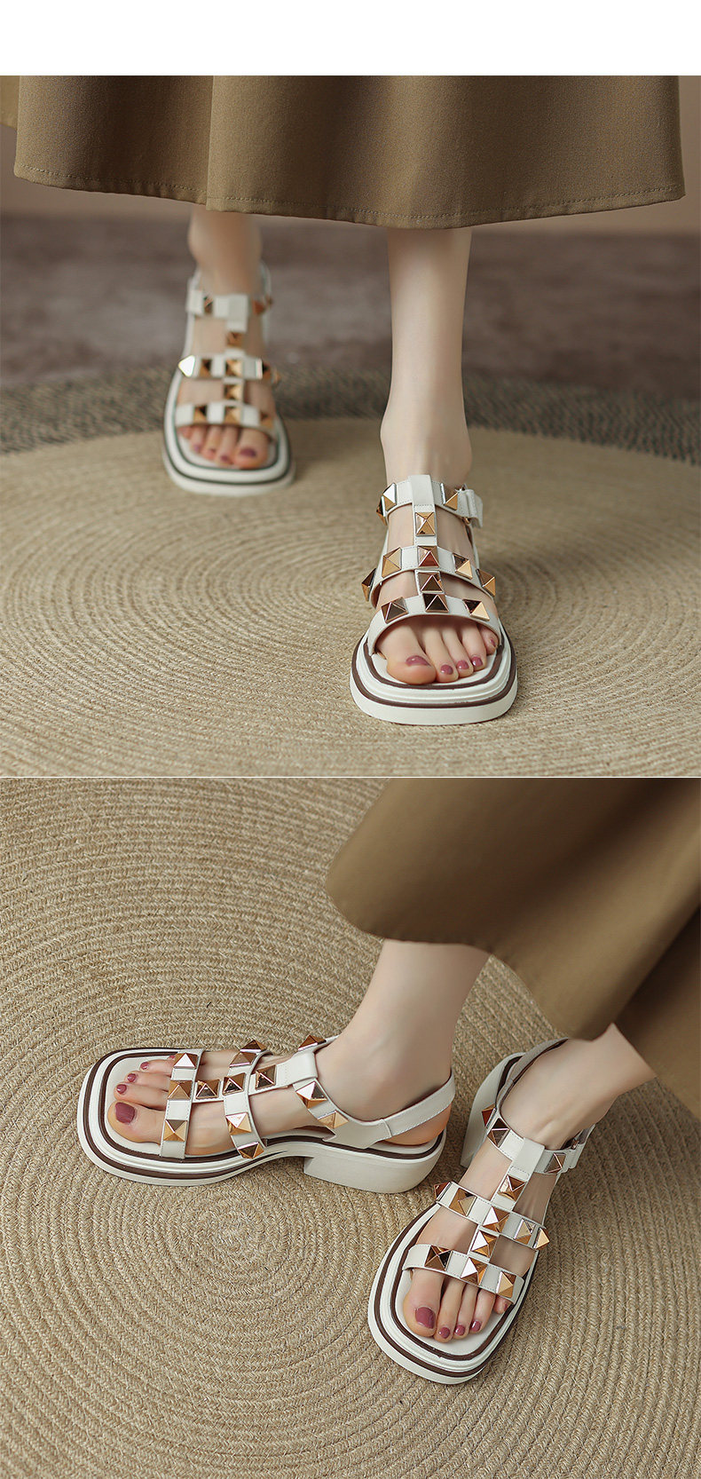 Летние босоножки, 2024 года, из натуральной кожи, большой размер
