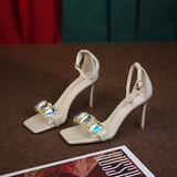 Босоножки, летние туфли на высоком каблуке с ремешком, популярно в интернете, 2022