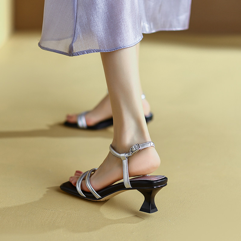 Ретро летние универсальные босоножки с ремешком, французский стиль, изысканный стиль, коллекция 2022, простой и элегантный дизайн