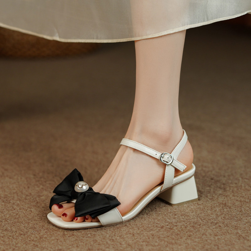 Летние босоножки с бантиком с ремешком, французский стиль, из натуральной кожи, коллекция 2022