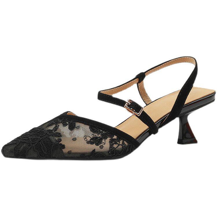 Летние черные босоножки, сетчатые туфли на высоком каблуке с ремешком, французский стиль, 2024 года, подходят к юбкам
