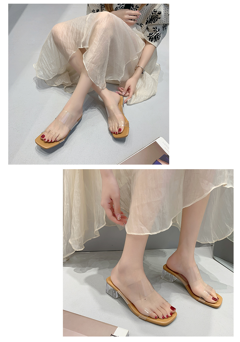 2025 новые летние прозрачные туфли на плоской подошве на среднем толстом каблуке, туфли с кристаллами для верхней одежды