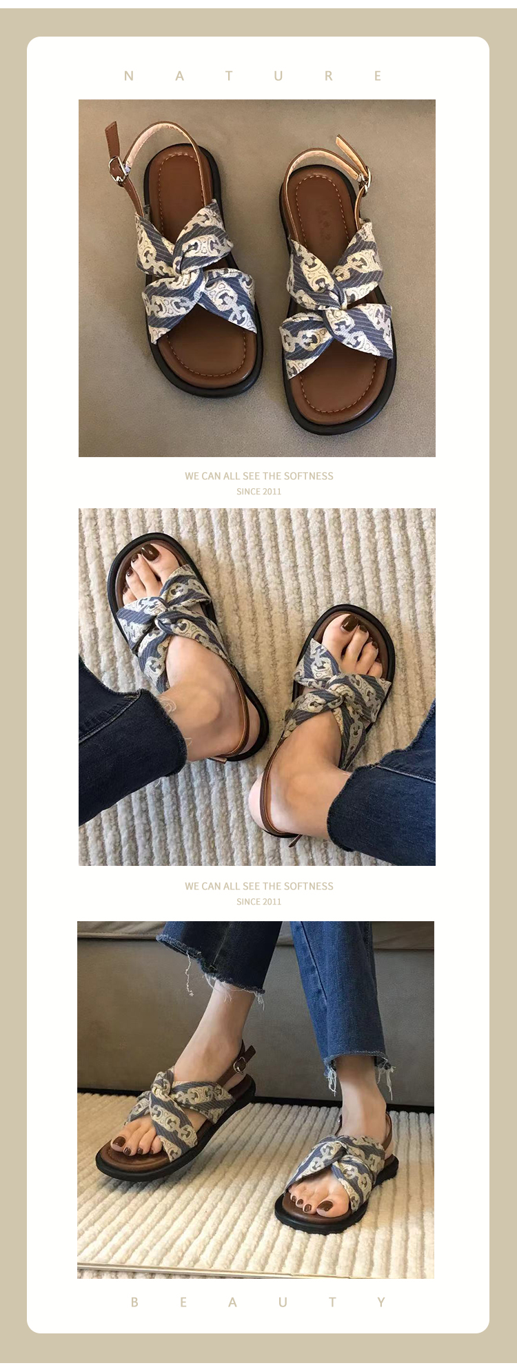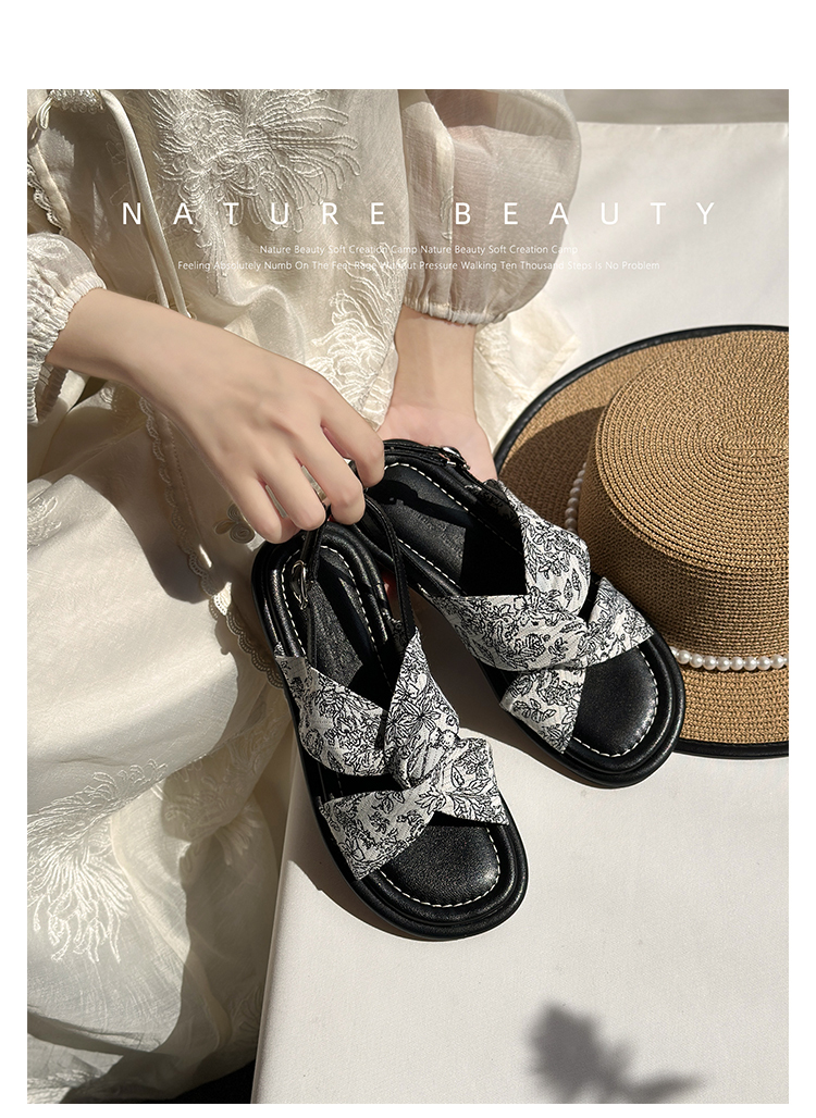 自然卷 Летние туфли, сандалии, 2024 года, мягкая подошва, в стиле Шанель
