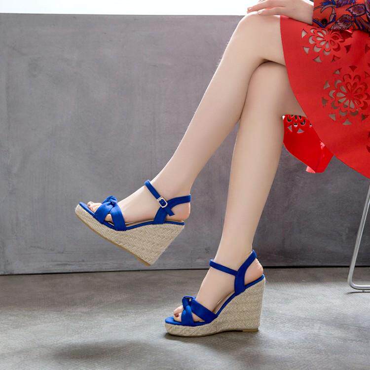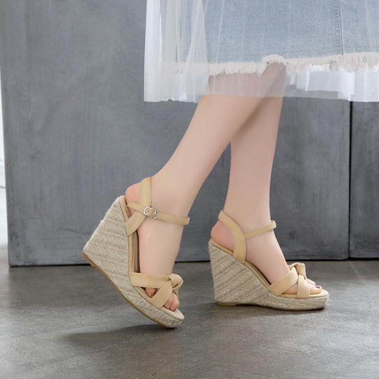 Модные босоножки, соломенные комфортные туфли на высоком каблуке, европейский стиль