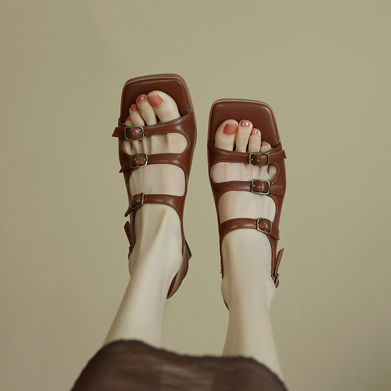 Летние ретро босоножки, ремень, универсальная пряжка, 2022, из натуральной кожи