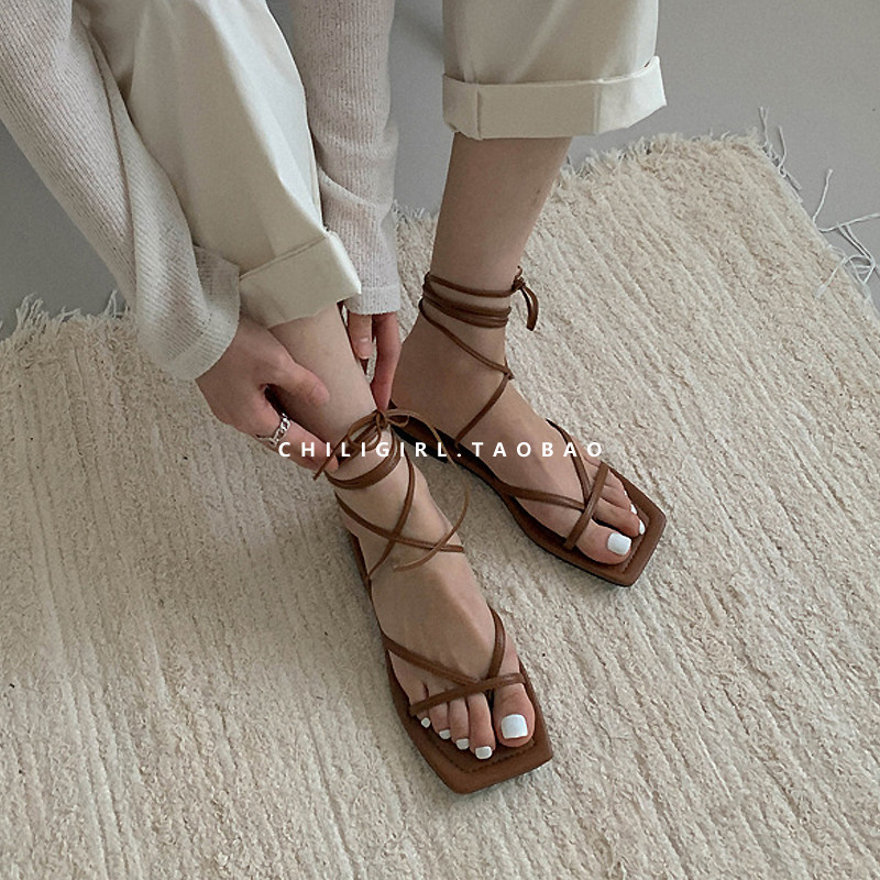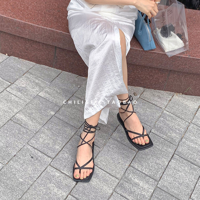 Chiligirl Южная Корея на площади платформы Восточных Ворот -палочные ноги римские сандалии с ремешками