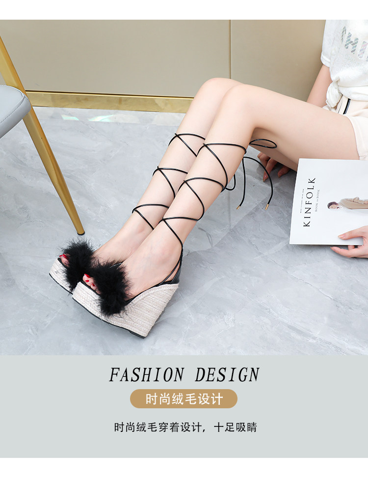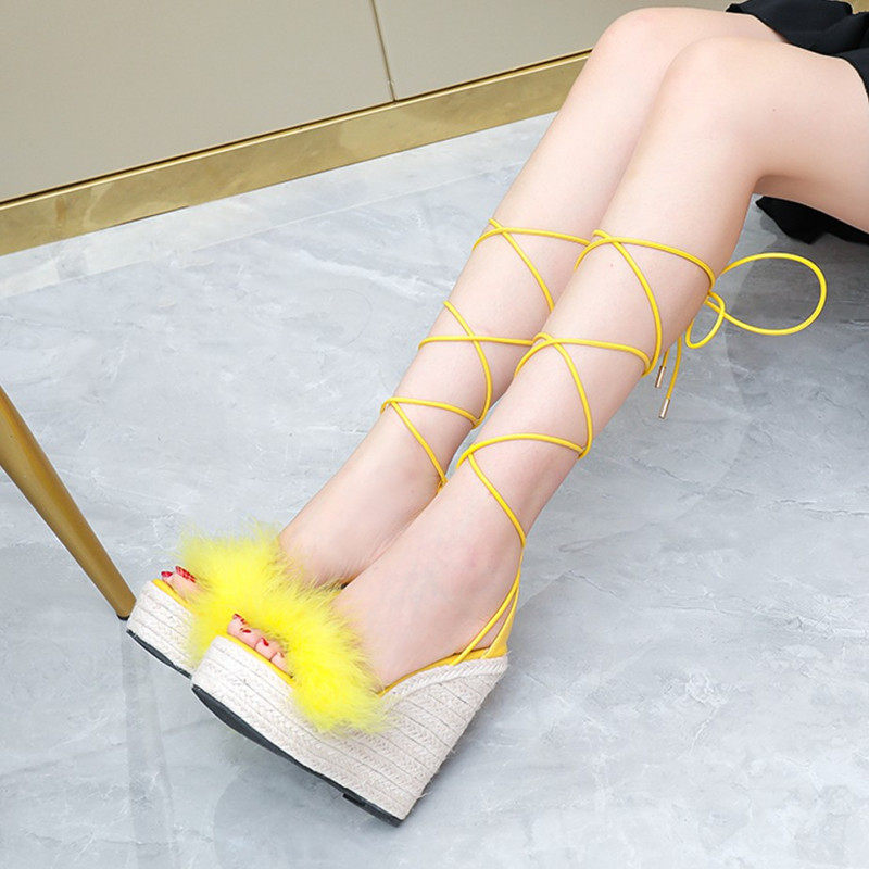 Супервысокие соломенные каблуки высотой 14 см, сексуальные и универсальные водонепроницаемые босоножки на танкетке с римским крестом для женщин, толстая подошва, большой размер