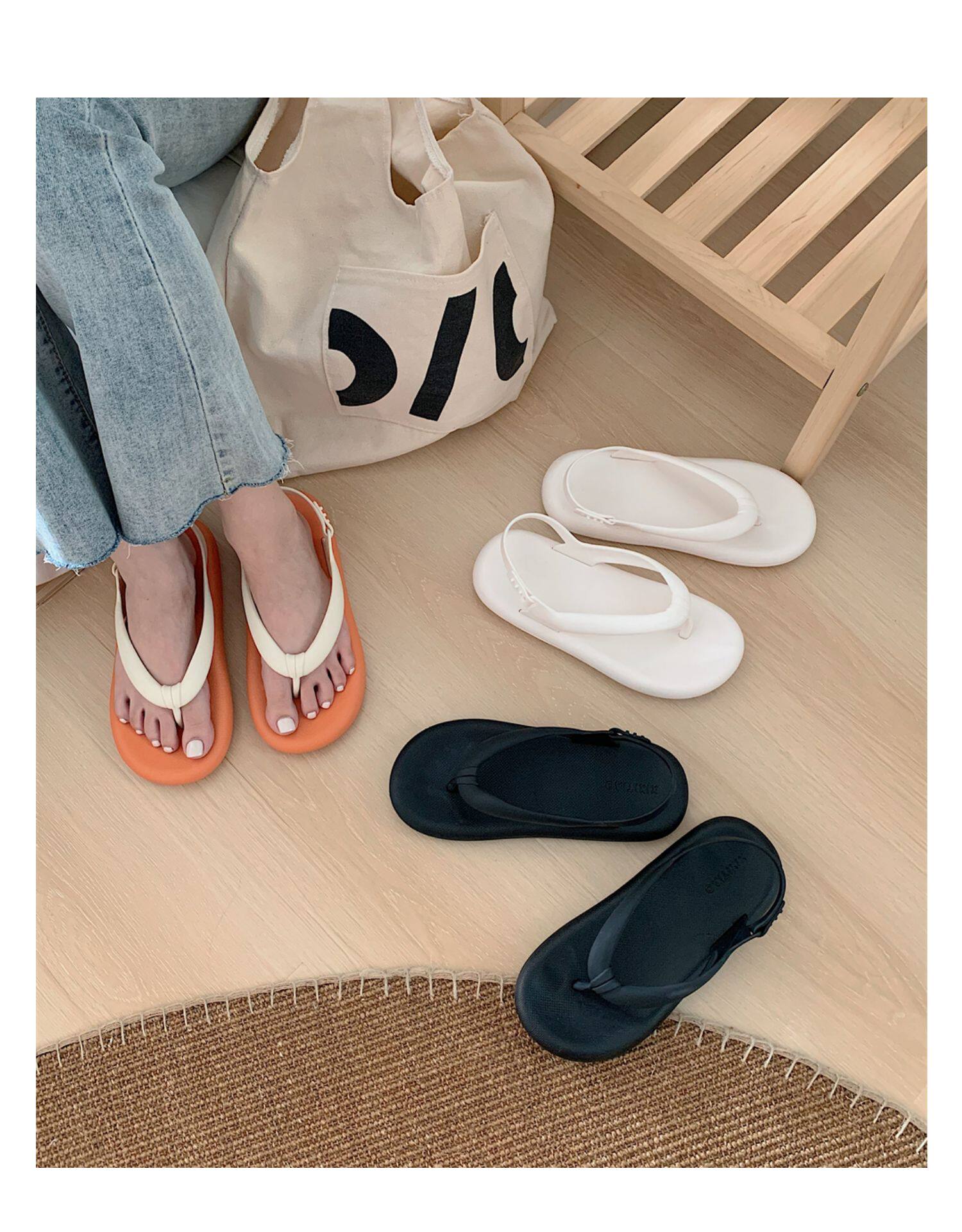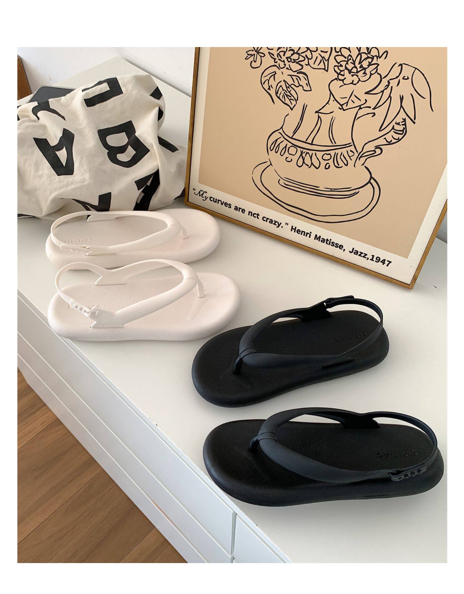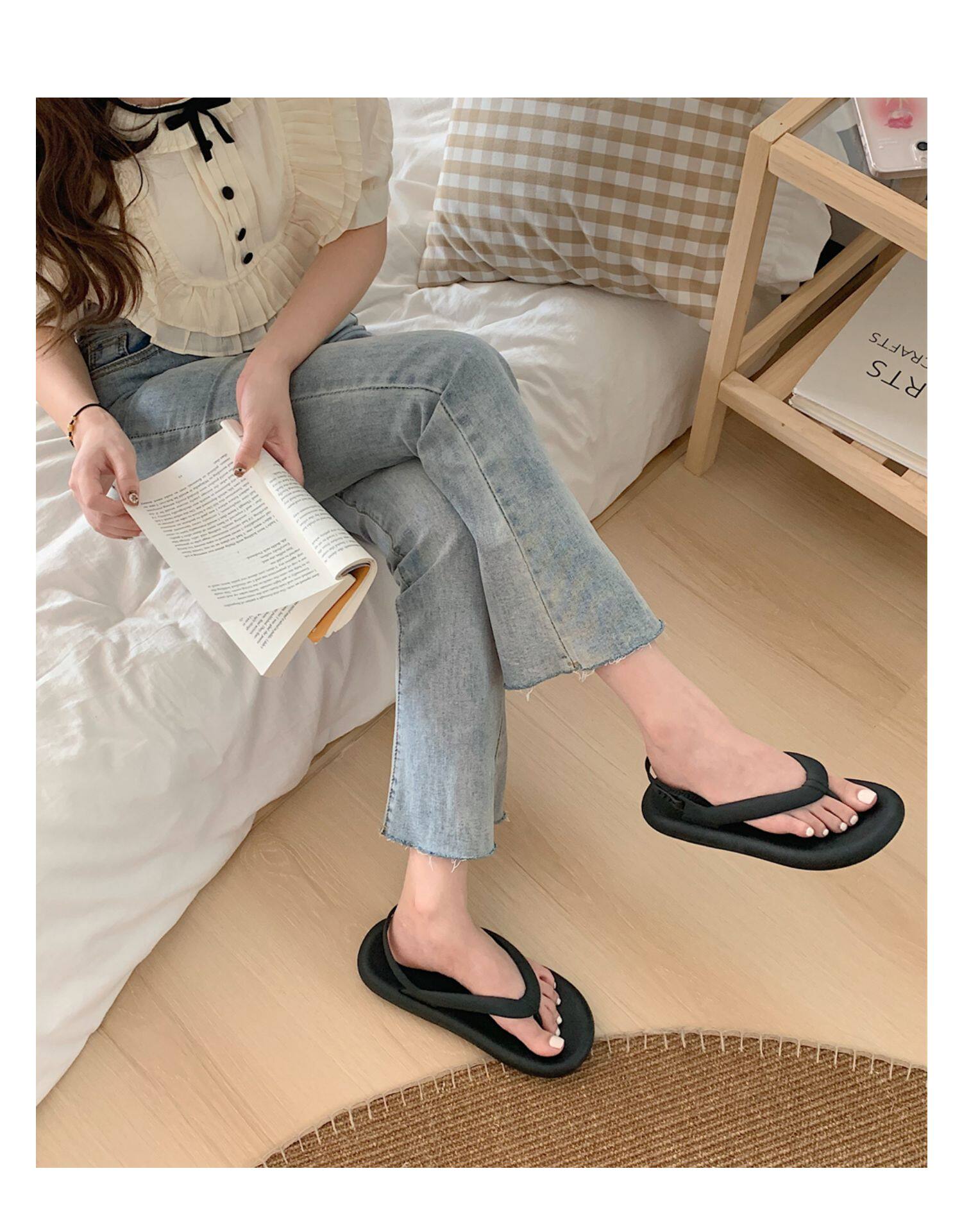 细细条 Модные сланцы, нескользящие универсальные босоножки, простой и элегантный дизайн